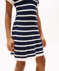 GIRLS 3-7 STRIPE CABLE KNIT POLO DRESS