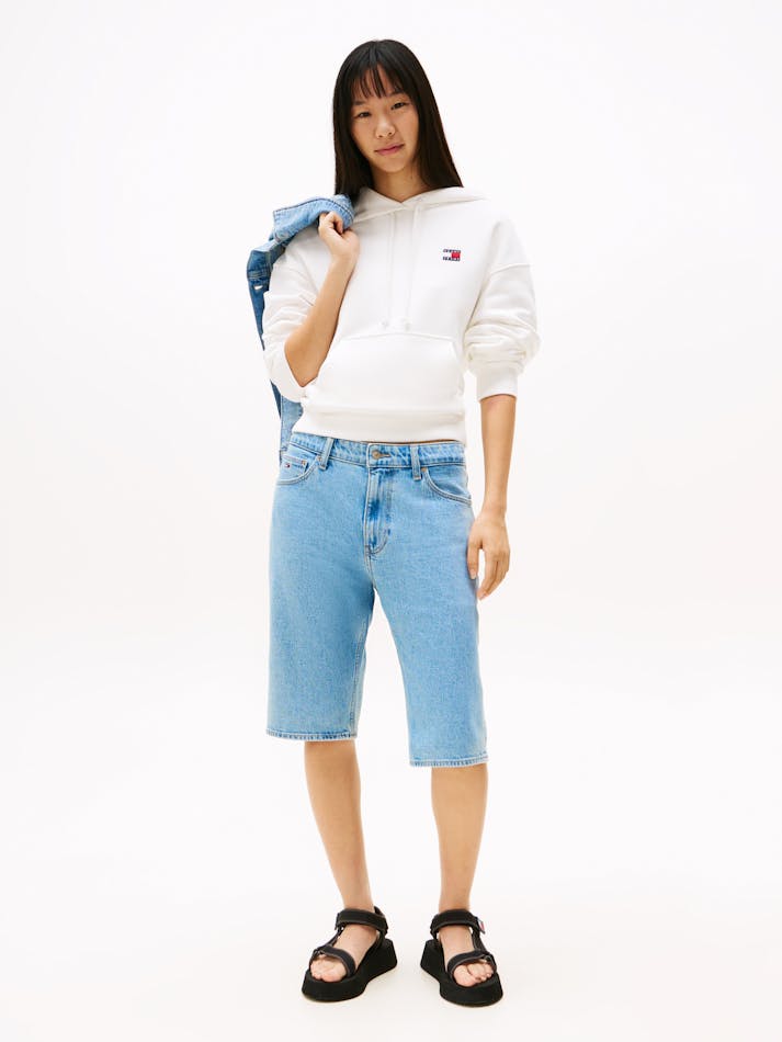 Keep it casual with this boxy hoodie, made from regenerative cotton fleece for a soft feel, with the Tommy Jeans badge adding a classic branded touch.