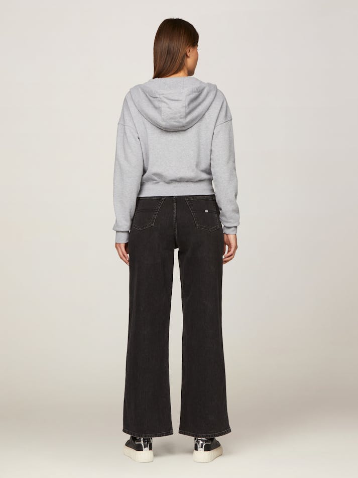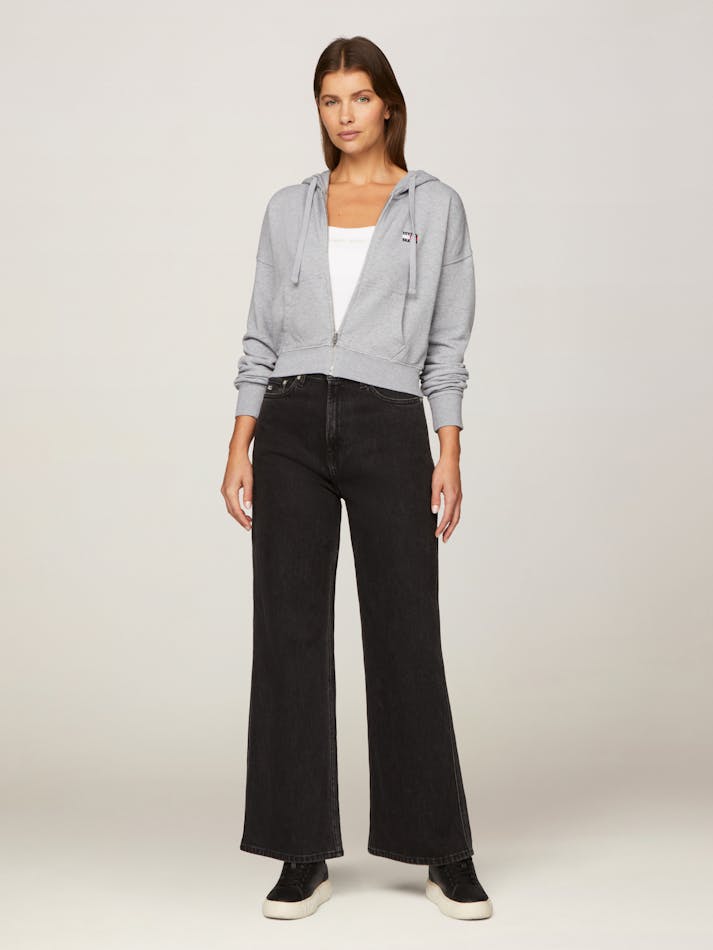 Elevate your downtime style with this boxy hoodie, complete with a drawstring hood and drop shoulders. The kangaroo pocket and zip through front add functional flair to this easy, cropped silhouette.