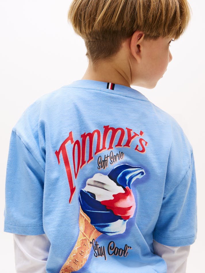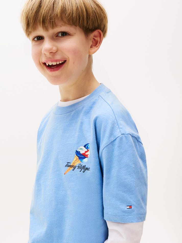 Bring summery spirit to your look with this cotton slub T-shirt featuring a vintage-style ice-cream graphic on the front and back.