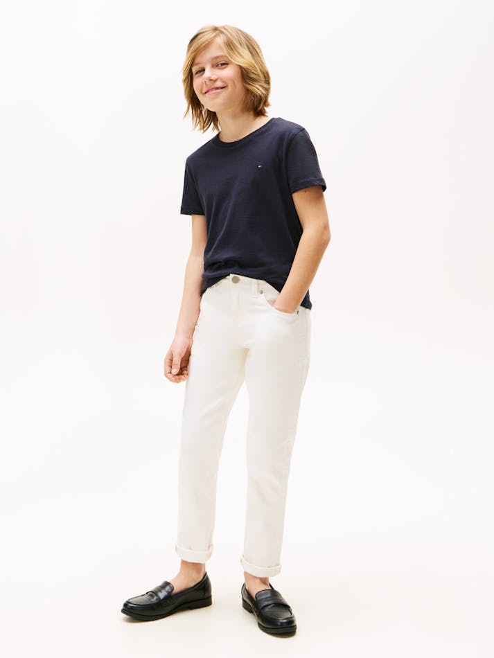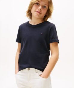 The Boys Basic Crew Knit Short Sleeve T-Shirt is a youthful twist on a core Tommy Hilfiger style. Clean and simple, this collared polo has a small flat logo stamped on the chest designed with a crew neck for all occasions.