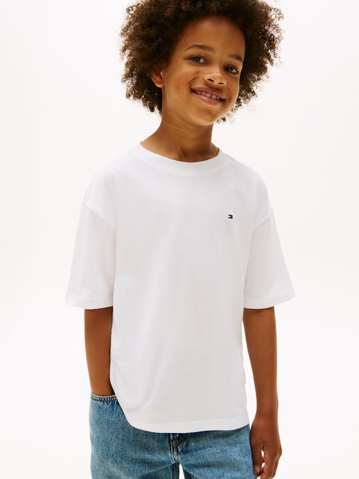 Add a classic touch to an everyday ensemble with this pure cotton T-shirt, featuring a crew neck and Tommy Hilfiger flag embroidery.