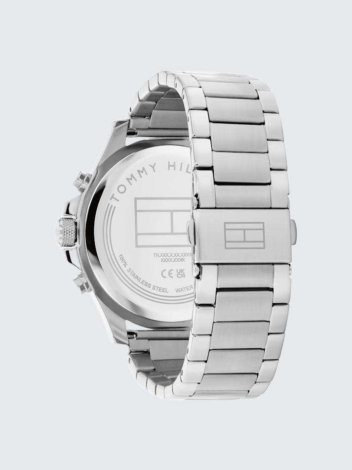 Introducing our men’s Tommy Hilfiger BOLD SPORT watch an emblem of robust spirit and dynamic energy. Featuring a semi-gloss dial, dimensional sub-eyes, and applied indexes gives it a touch of sophistication. The dial is also adorned with pops of color adding a playful and vibrant touch to your wrist. Multifunction and offered in link bracelets or branded silicone straps.