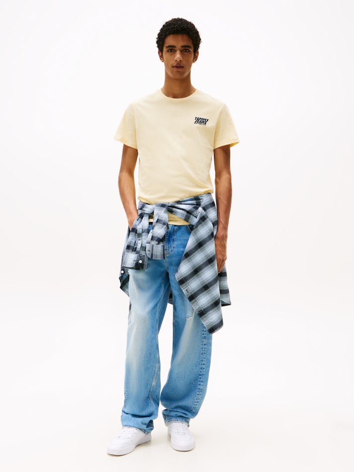 Add a playful twist to your wardrobe staples with this flattering slim-fit T-shirt finished with a retro-inspired bubble logo on the chest.