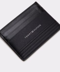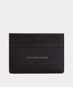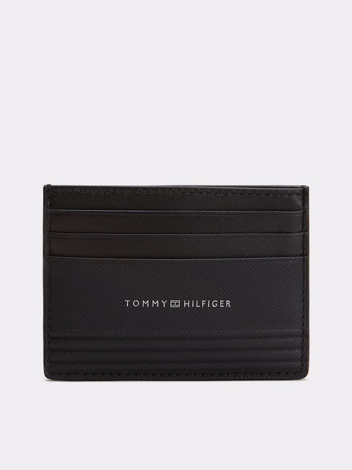 Achieve easy access to your essentials with this genuine leather card holder, featuring multiple card slots and a sleek Tommy logo embossed on the front.