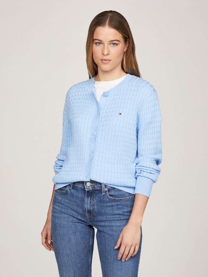 Layer up as the seasons change in this versatile cardigan, made from pure cotton in a tactile cable-knit design.