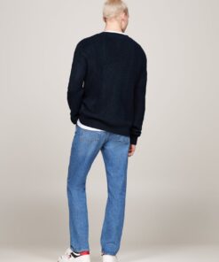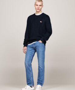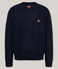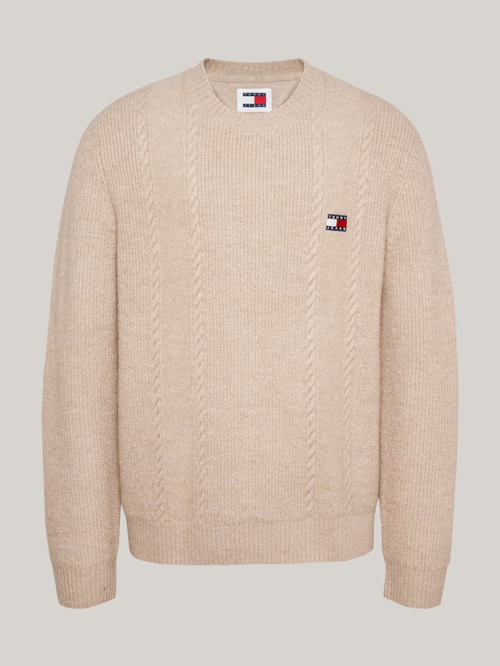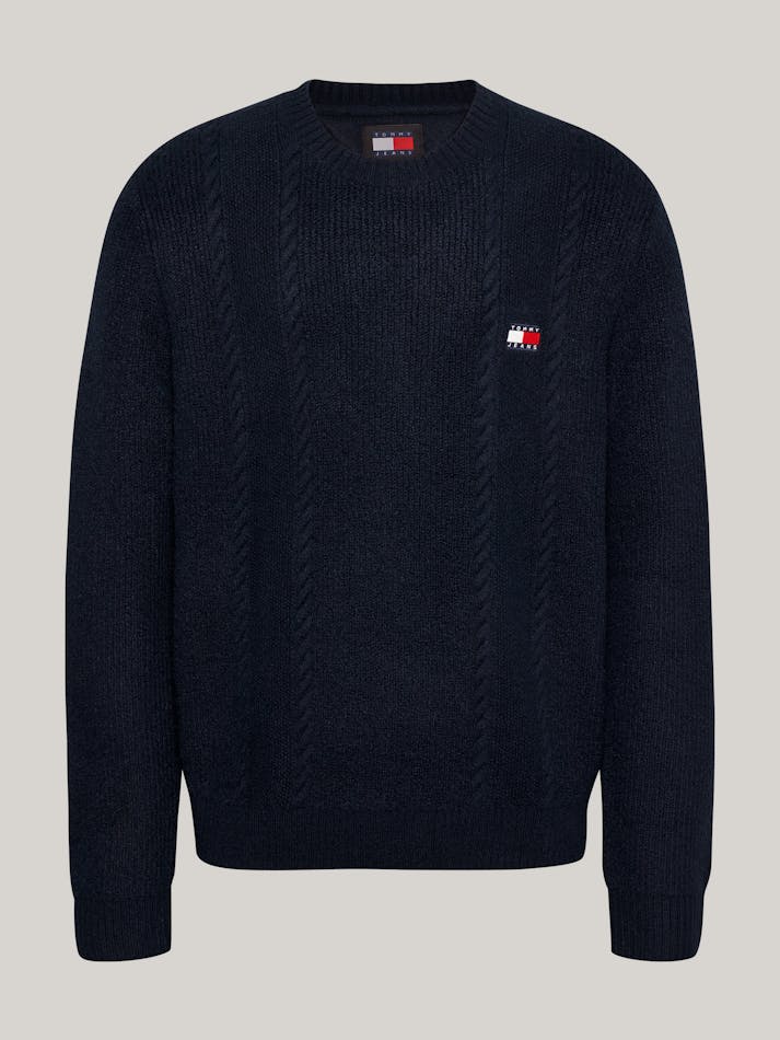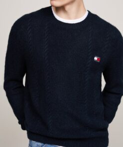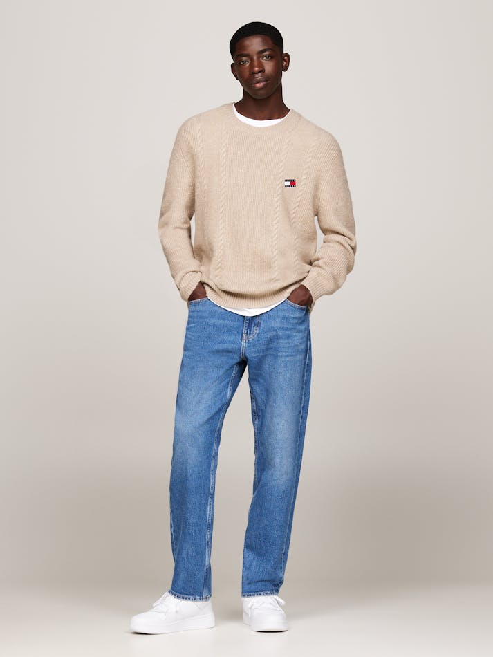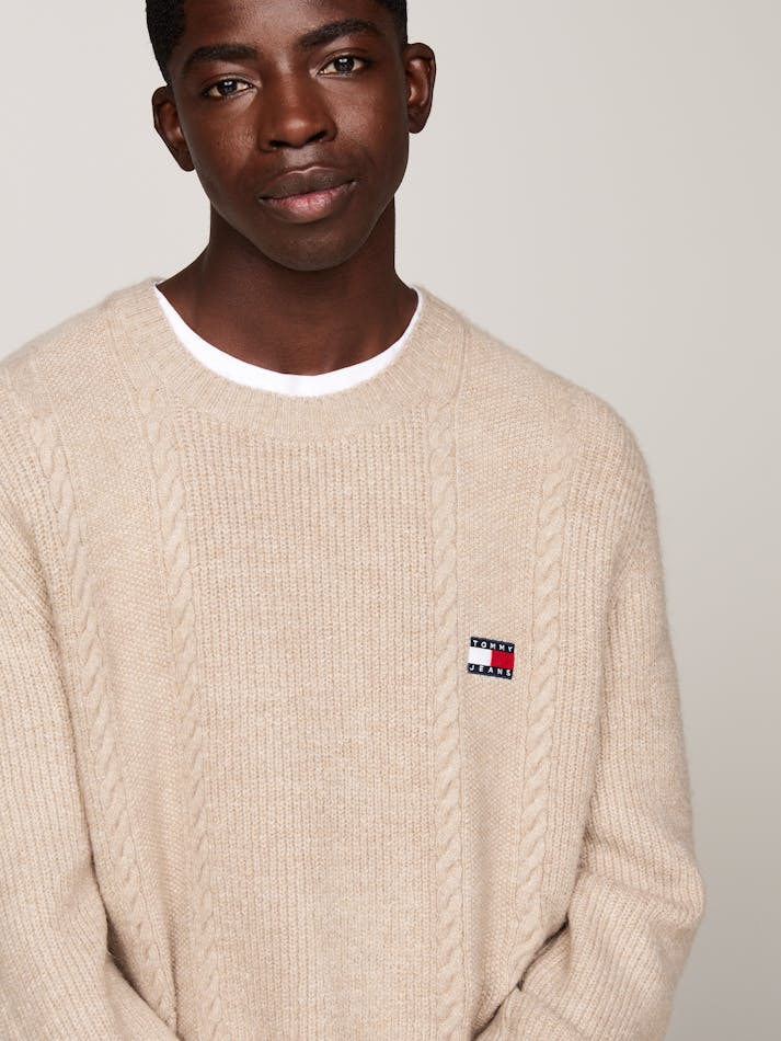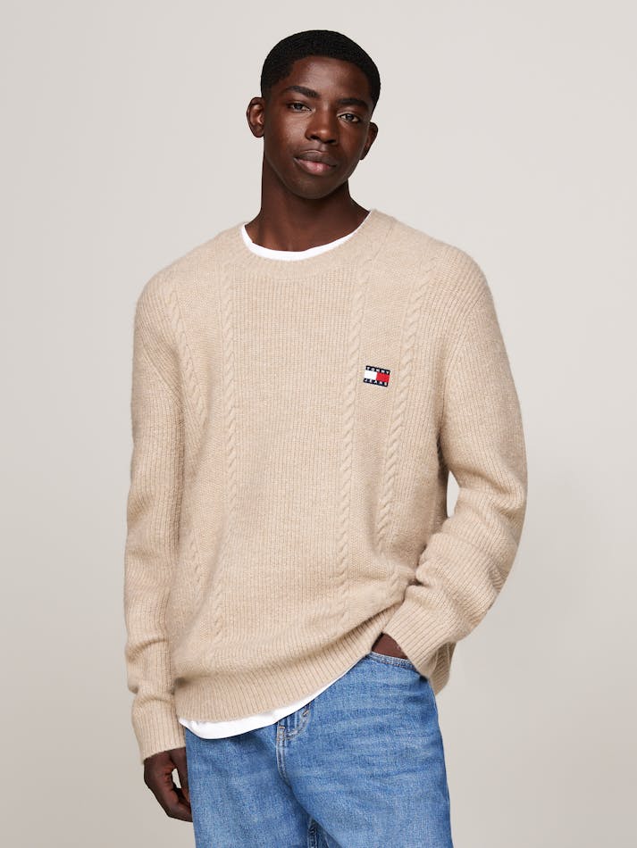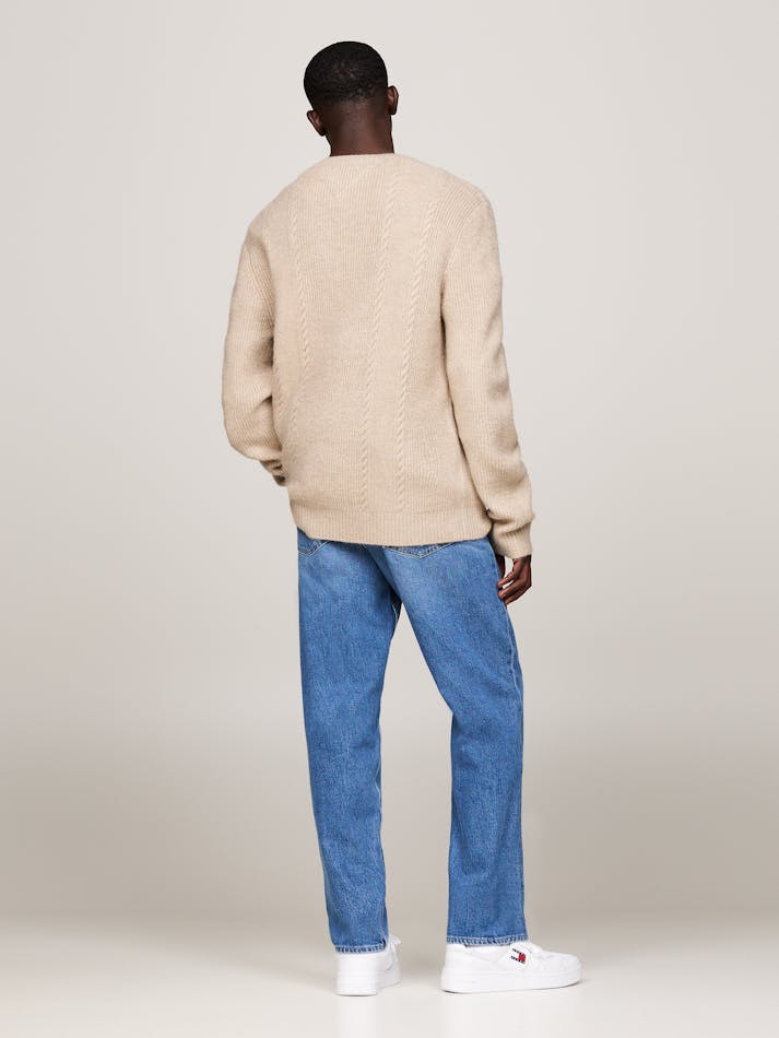 This jumper features cable-knit detailing through the body, enhancing its slim fit and timeless styling with heritage-inspired texture.