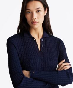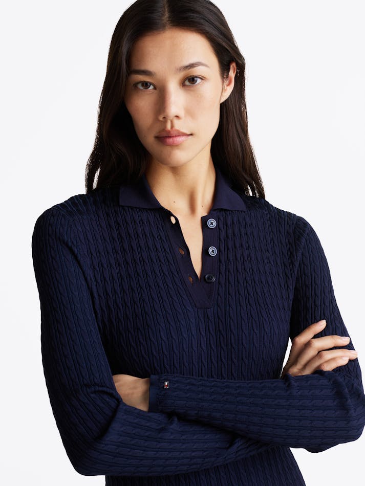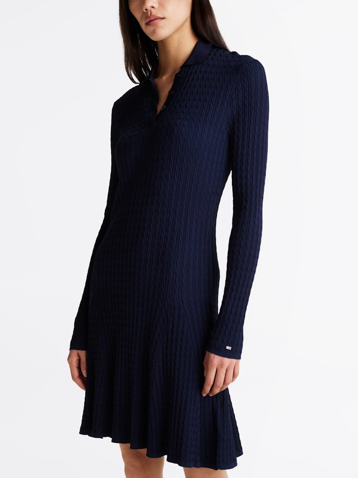 A shiny cable-knit design gives this jumper dress a perfectly preppy look that will take you through the party season and beyond.