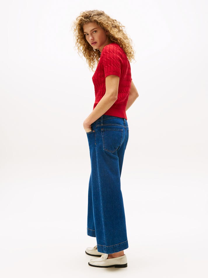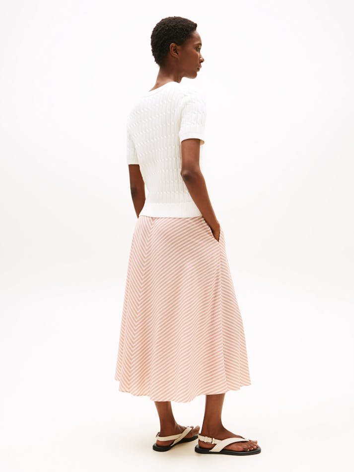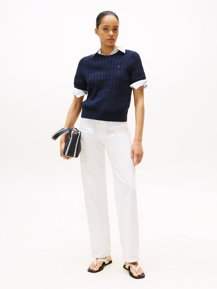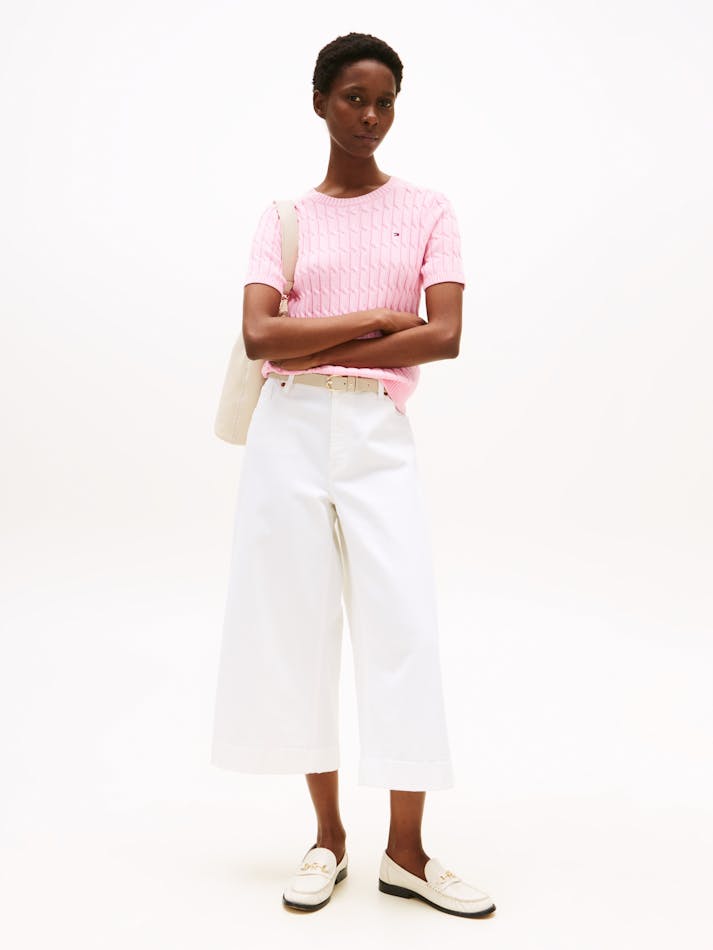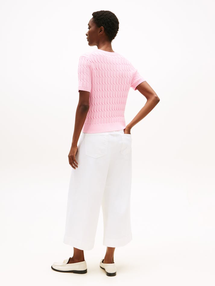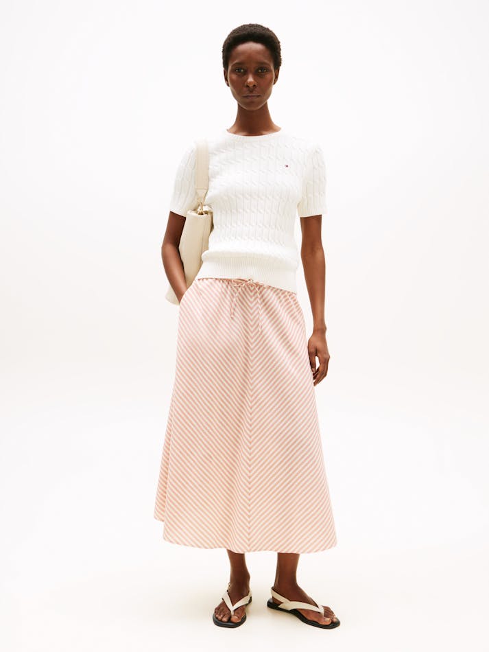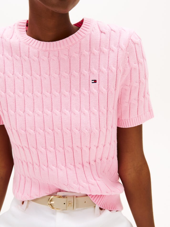 A classic reimagined, this short sleeve sweater blends a timeless cable knit with statement horizontal stripes. Made from regenerative cotton, it’s soft, breathable and an effortless addition to your wardrobe.