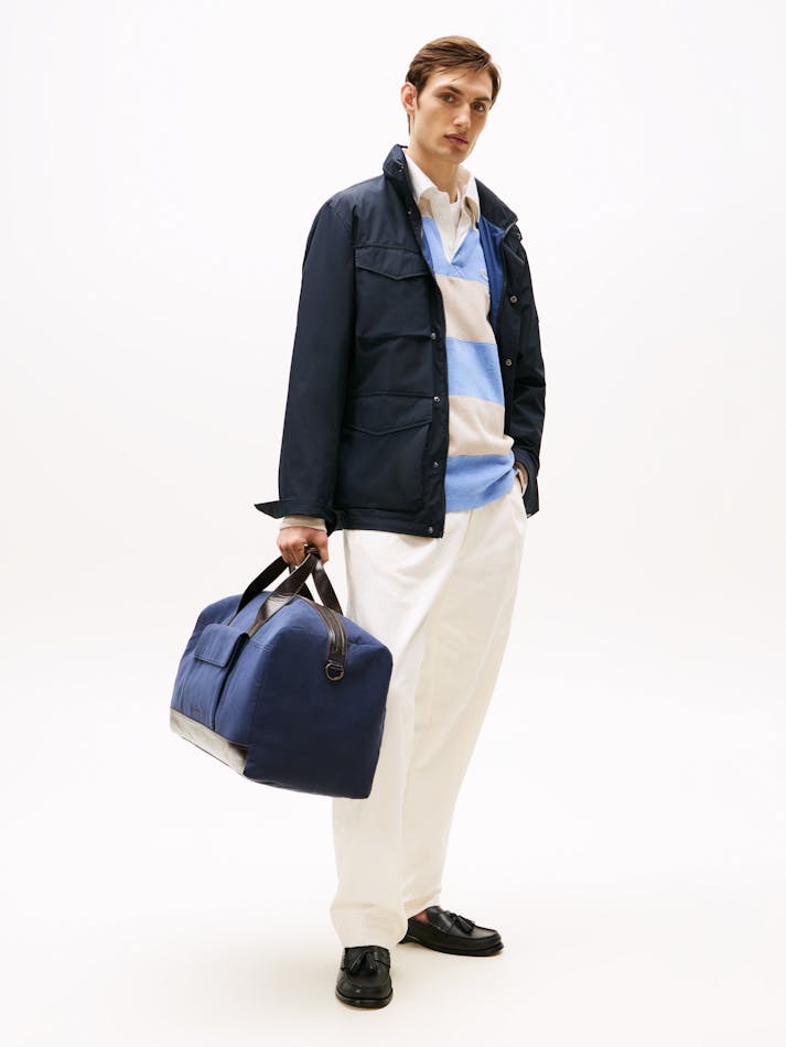 Head off for weekends away with this preppy duffel bag, featuring metal branding for a luxe finishing touch.