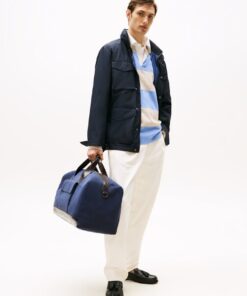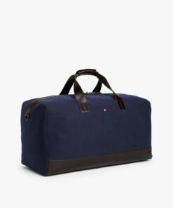 Head off for weekends away with this preppy duffel bag, featuring metal branding for a luxe finishing touch.
