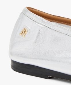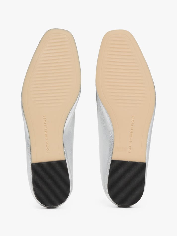 A metallic finish and squared toe bring a sleek, modern freshness to the classic femininity of these soft leather ballerinas.