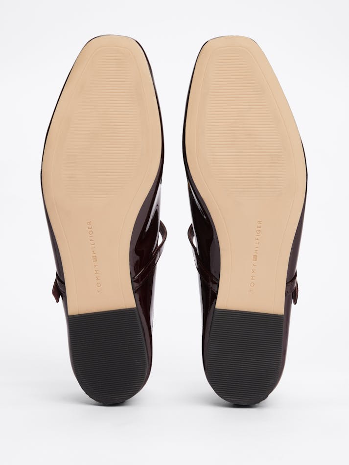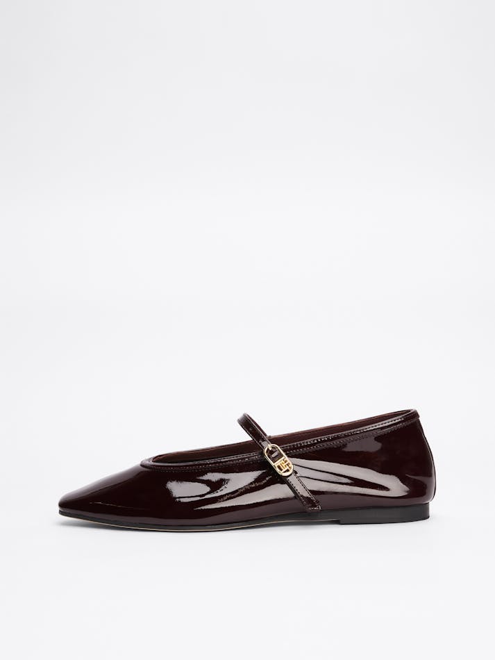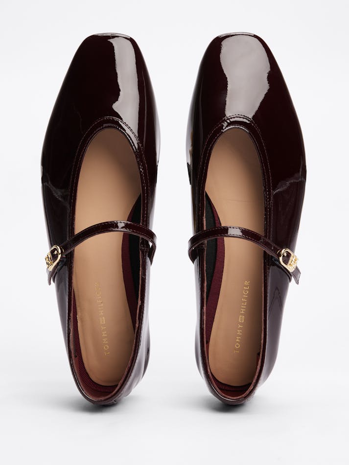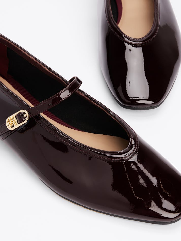 A timeless style is made party-ready with these leather ballerinas, featuring a patent finish and Mary Jane straps.