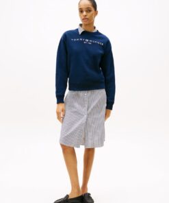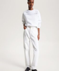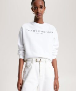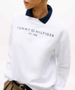 Casual days call for this cotton-blend sweatshirt featuring a classic crew neck and a Tommy Hilfiger logo emblazoned across the chest.