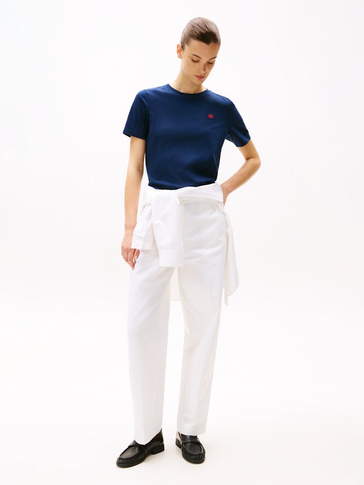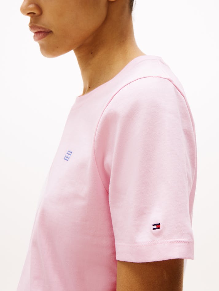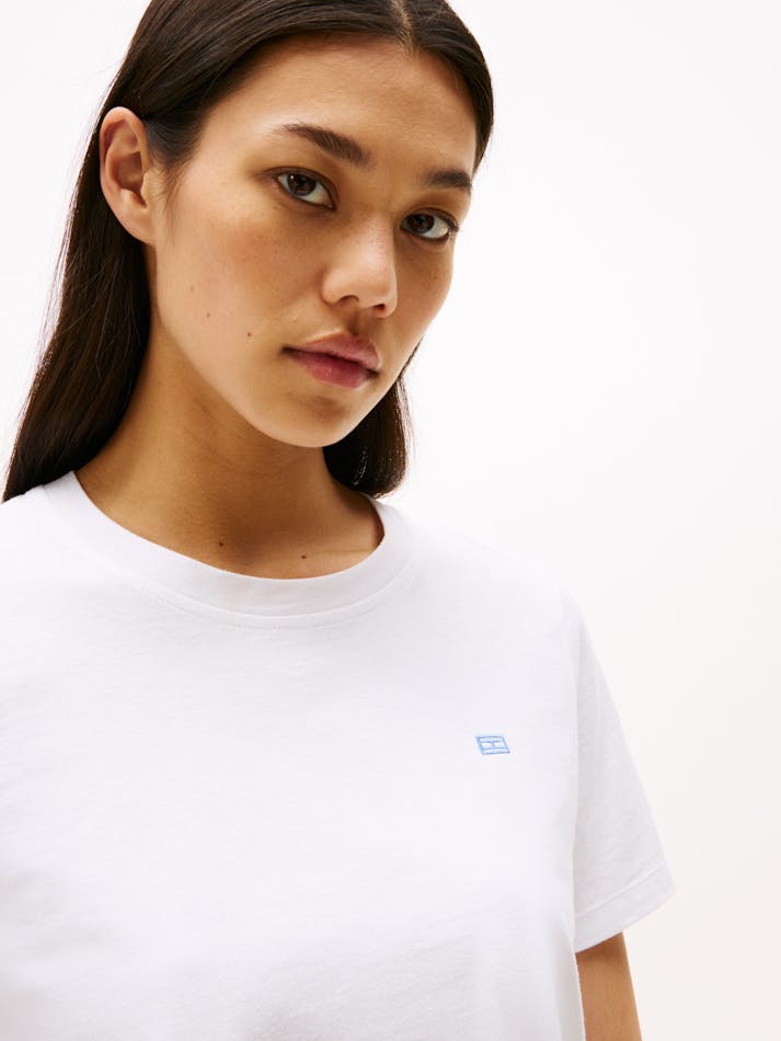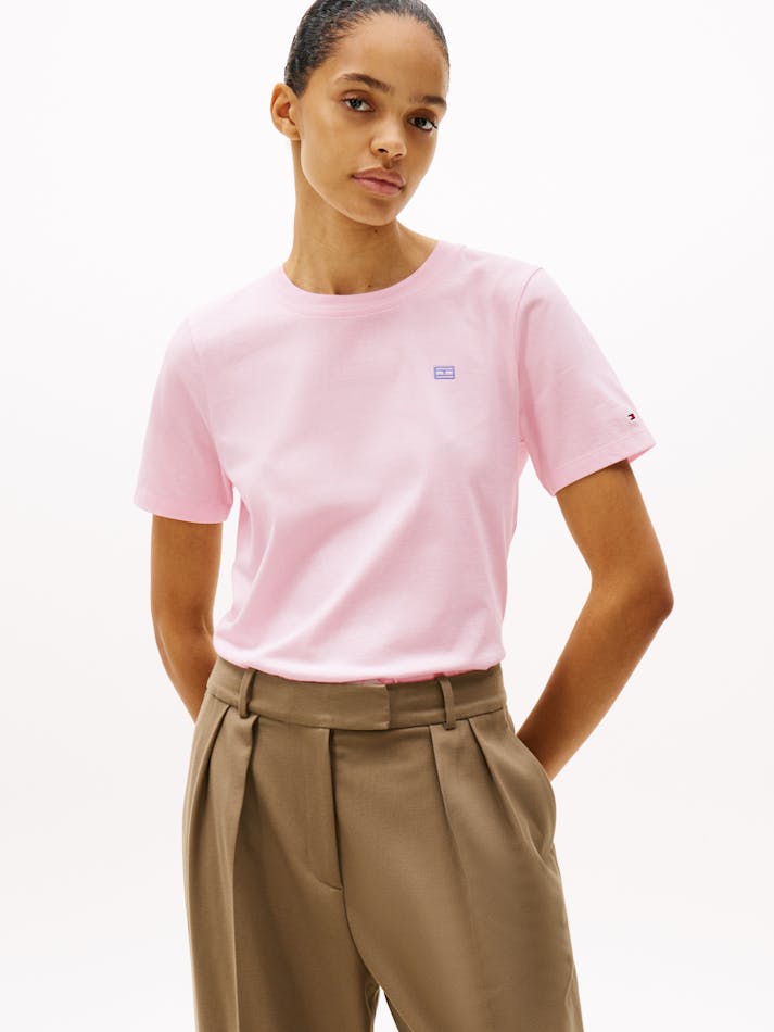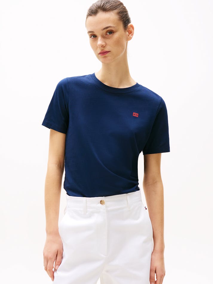 Enhance your collection of go-to layers with this crew-neck tee, featuring a contrast flag embroidered on the chest for a signature finish.