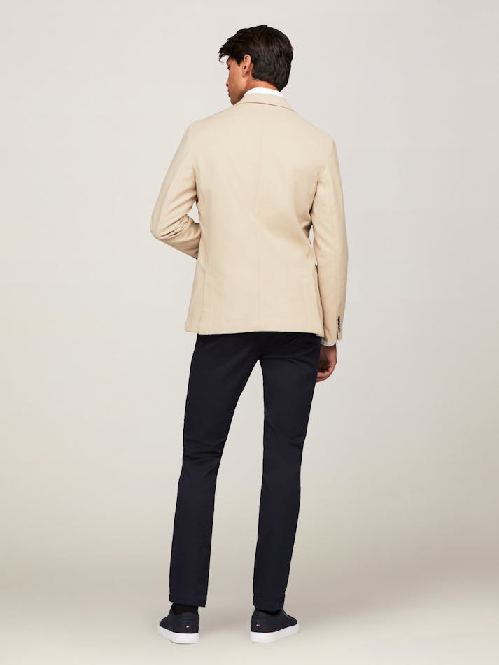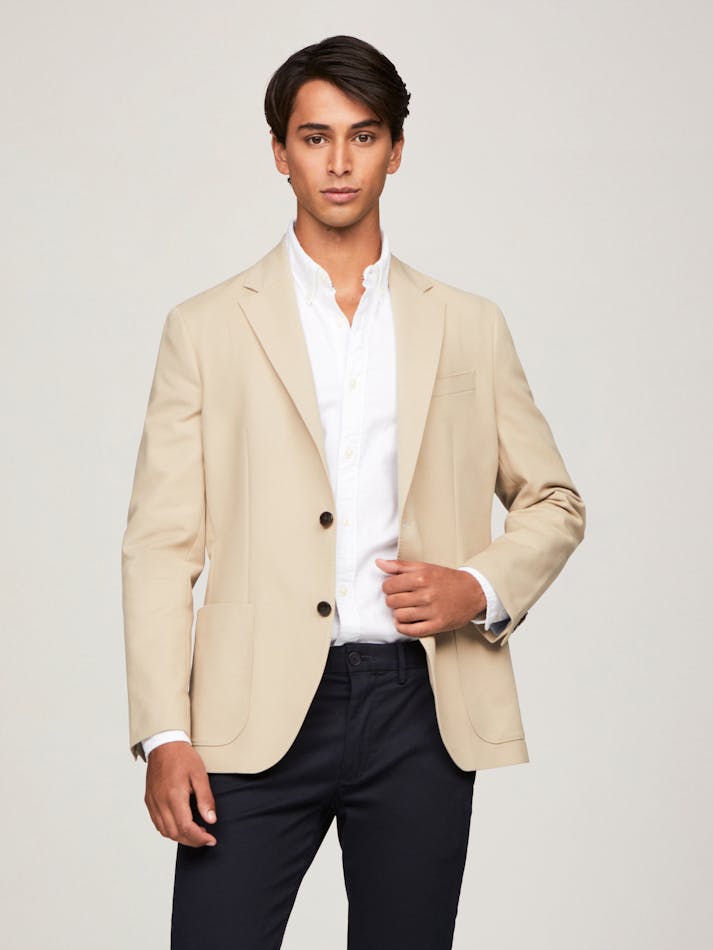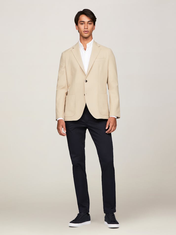 This cotton blazer combines modern design with classic tailoring, providing a sleek and comfortable fit. Featuring a single breasted design with multiple pockets, this style is ideal for both work and social events.
