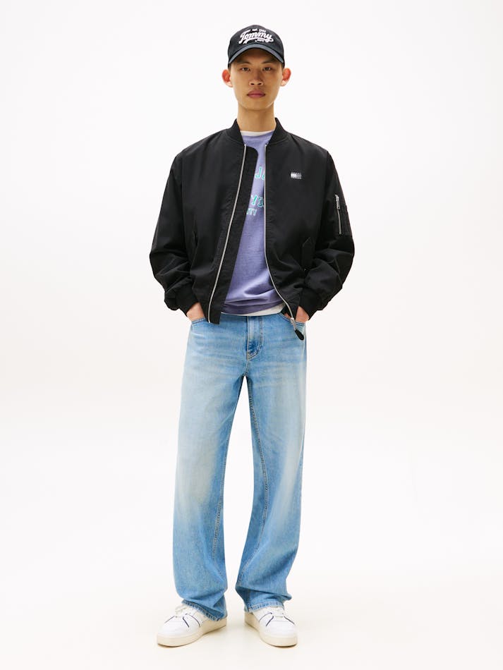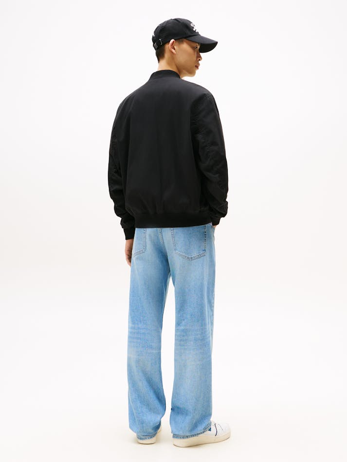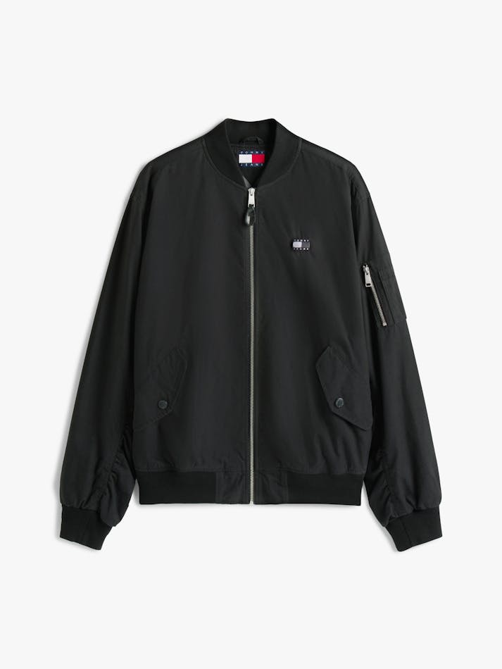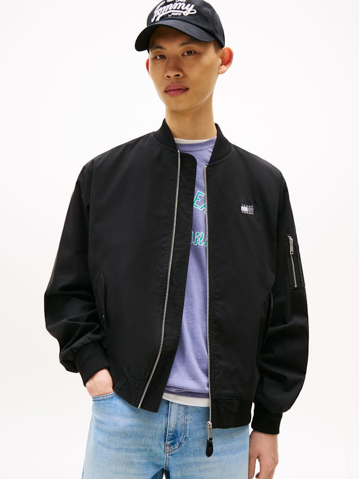 Stay cosy through seasonal changes with this regenerative cotton bomber jacket, complete with multiple pocket options and a monochrome logo badge on the chest for a fresh touch.