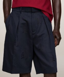 CREST EMBROIDERY WIDE LEG CHINO LINEN SHORTS