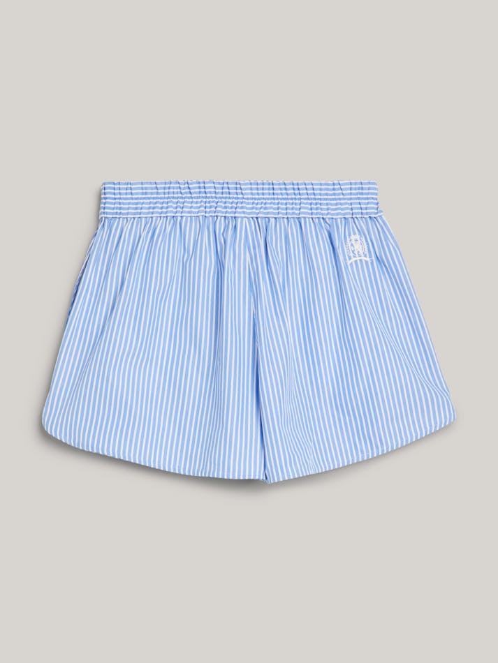 This season, the Tommy Hilfiger Collection transforms core brand styles with multi-dimensional pleating, cables and sport detailing, creating dynamic modern pieces. These Ithaca-stripe shorts are crafted from soft cotton and finished with THC crest embroidery to add a dash of refinement.