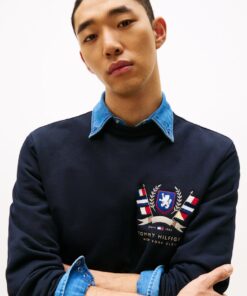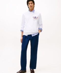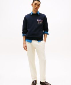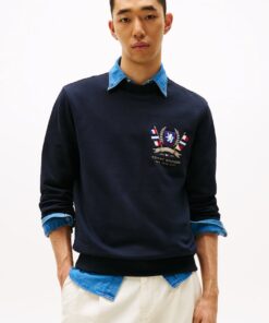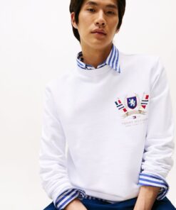 Mix up your daily outfits with this pure cotton sweatshirt, finished with bold crest logo embroidery on the chest.