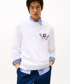 Mix up your daily outfits with this pure cotton sweatshirt, finished with bold crest logo embroidery on the chest.