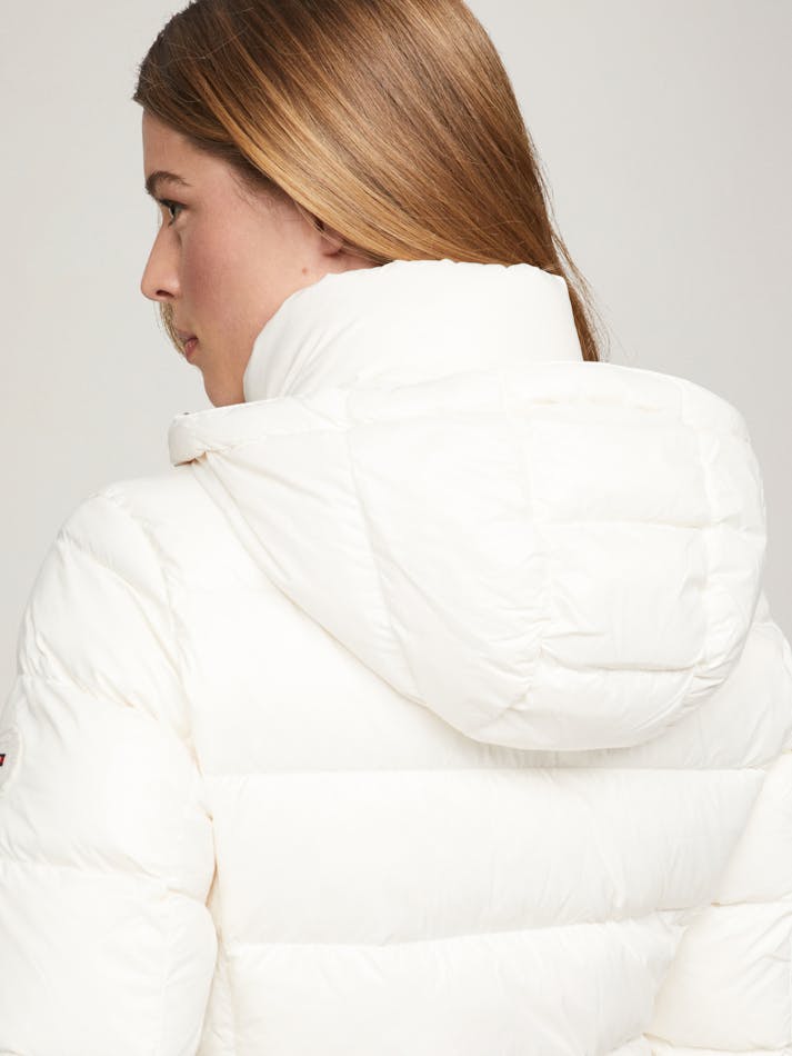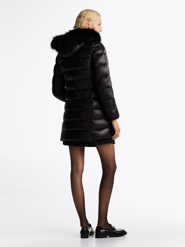 DOWN-FILLED GLOSSY HOODED PUFFER COAT
