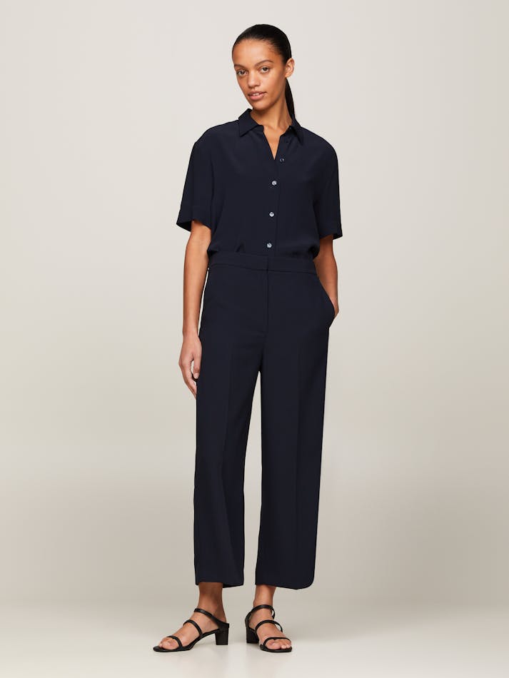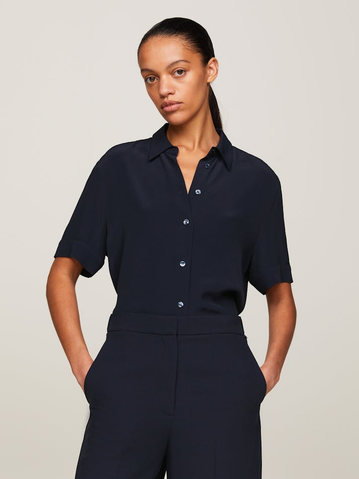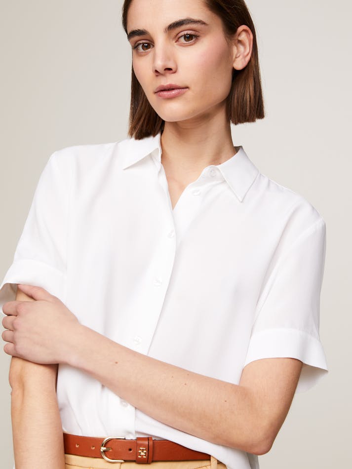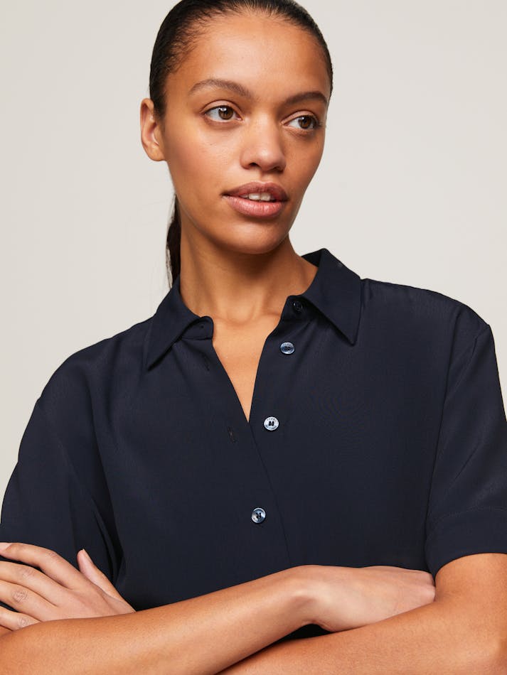 Made from viscose to a relaxed fit, this short-sleeve shirt has a fluid feel, while the collared neckline ensures a neat finish.