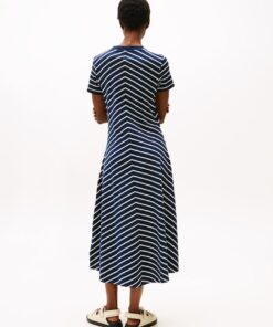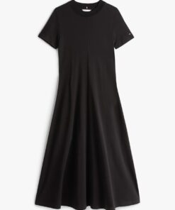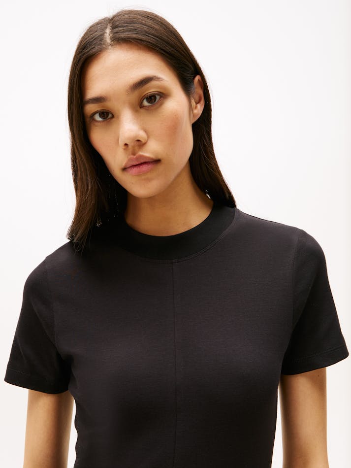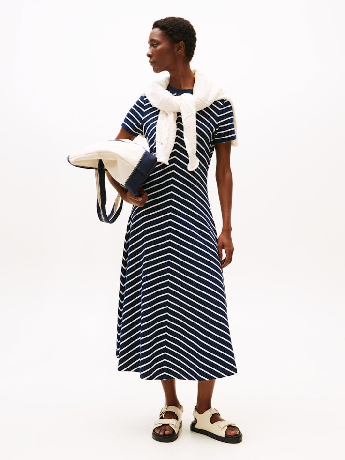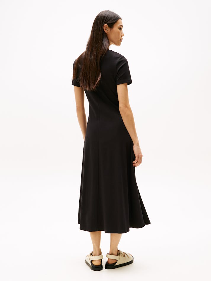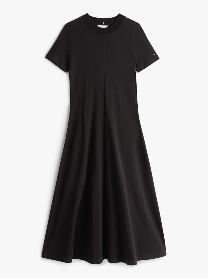 This versatile midi dress is a wardrobe favourite thanks to the flattering fit-and-flare silhouette with a neat mock neck and flag embroidery.