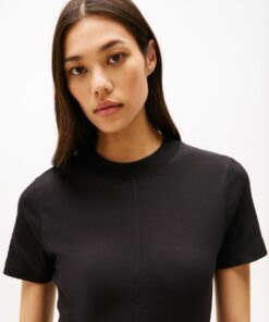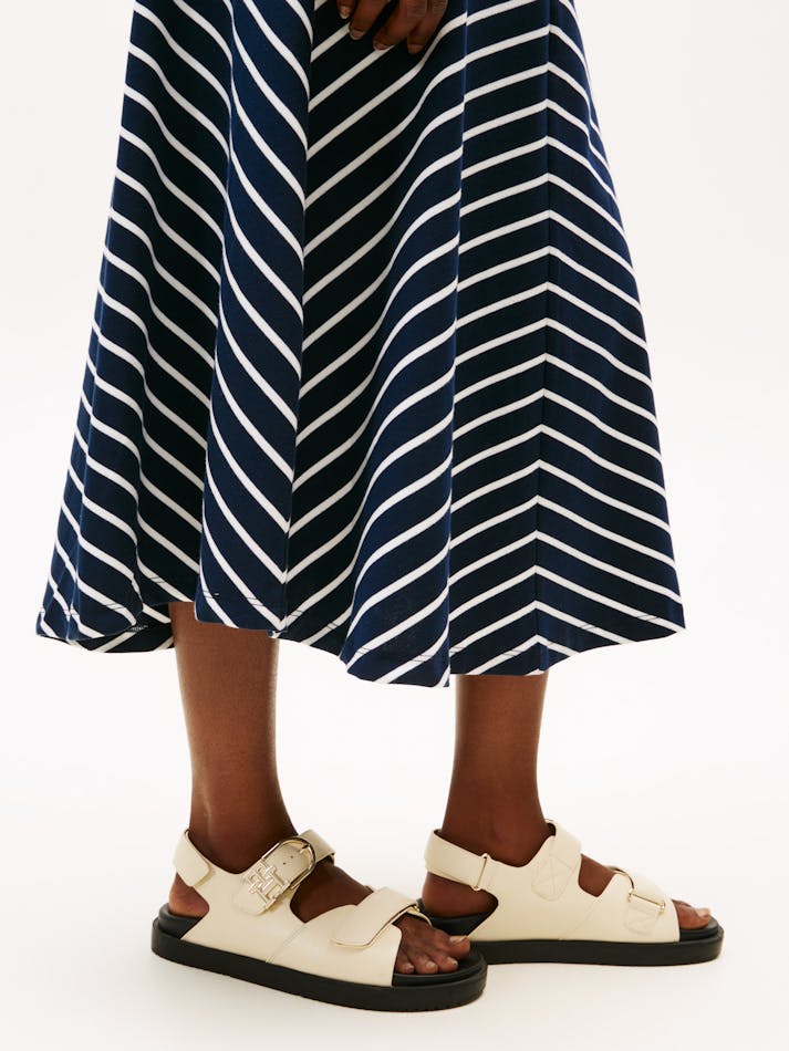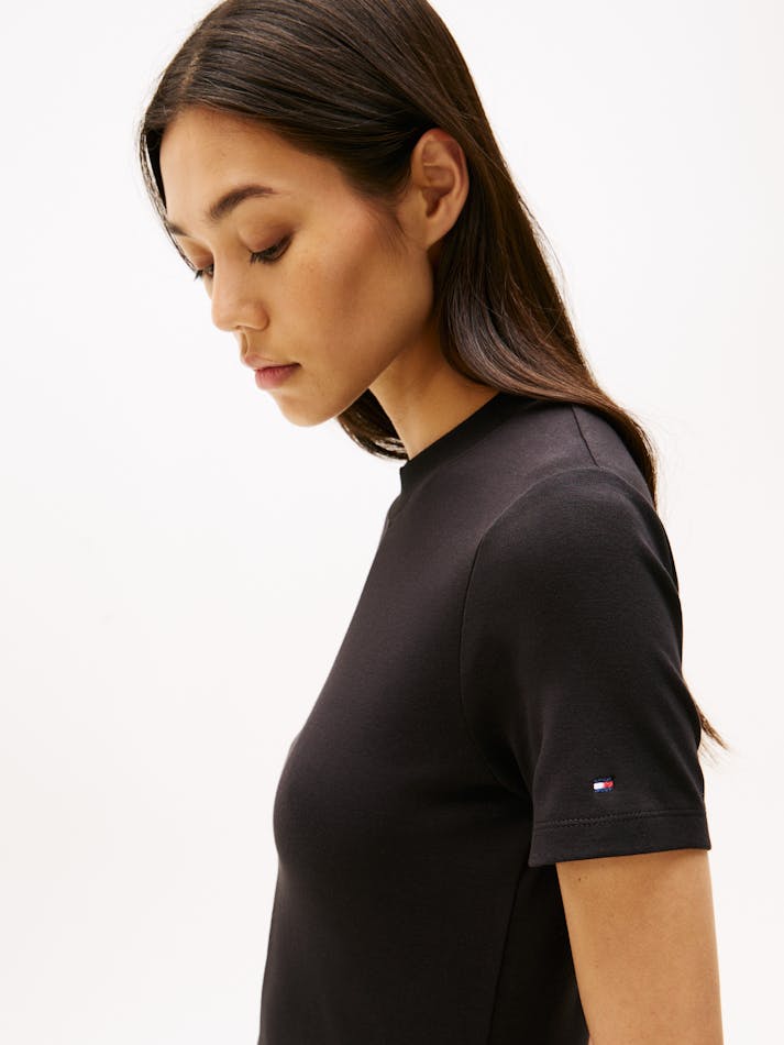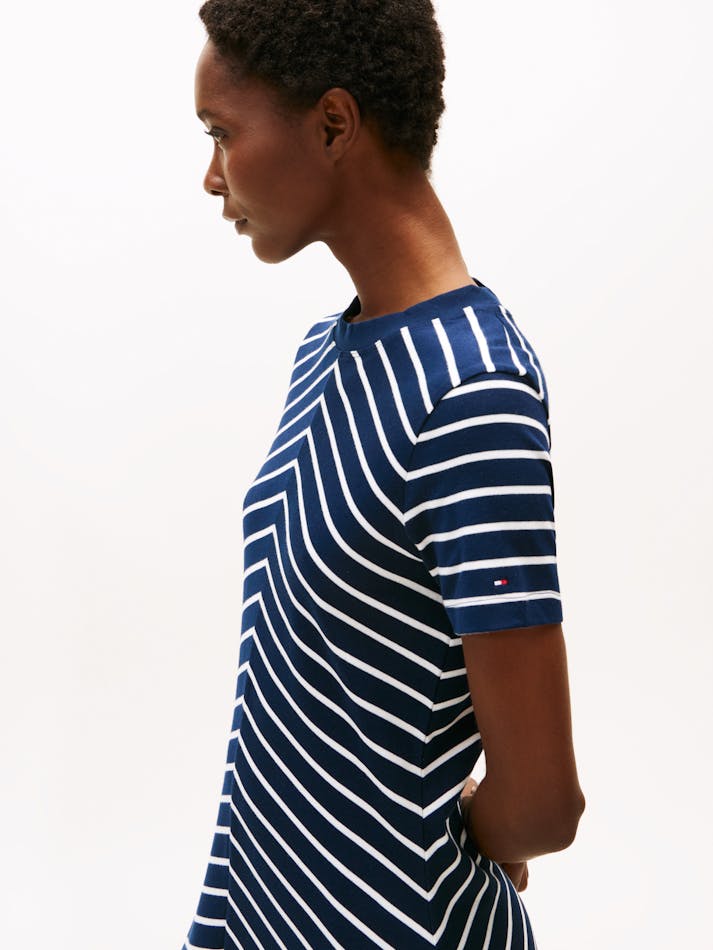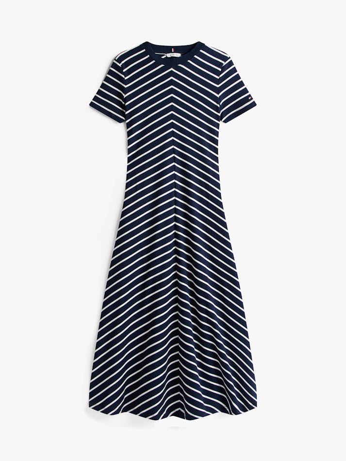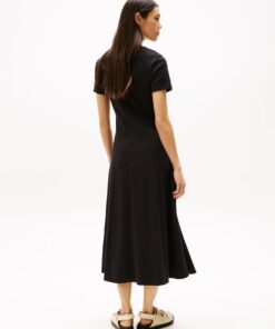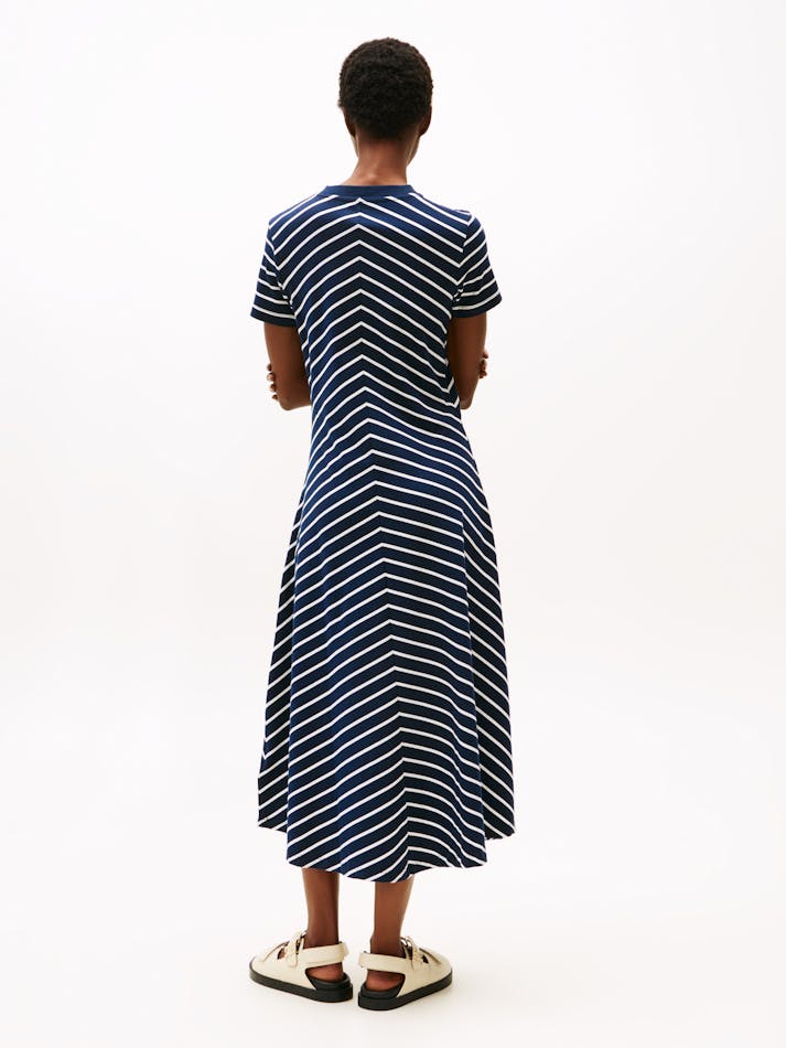This versatile midi dress is a wardrobe favourite thanks to the flattering fit-and-flare silhouette with a neat mock neck and flag embroidery.