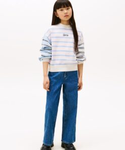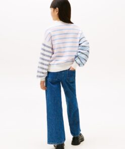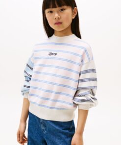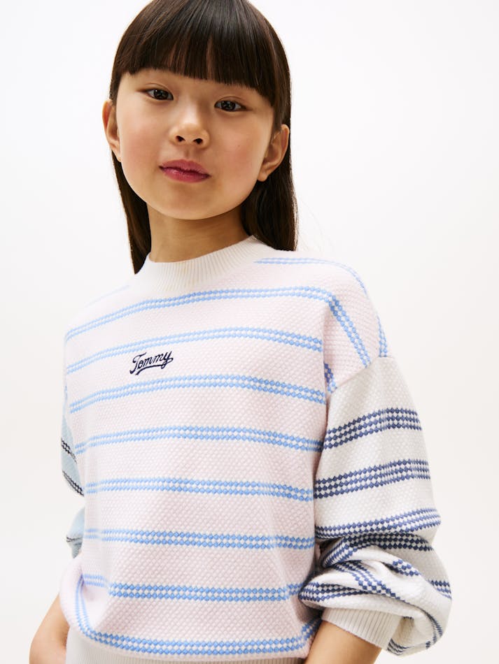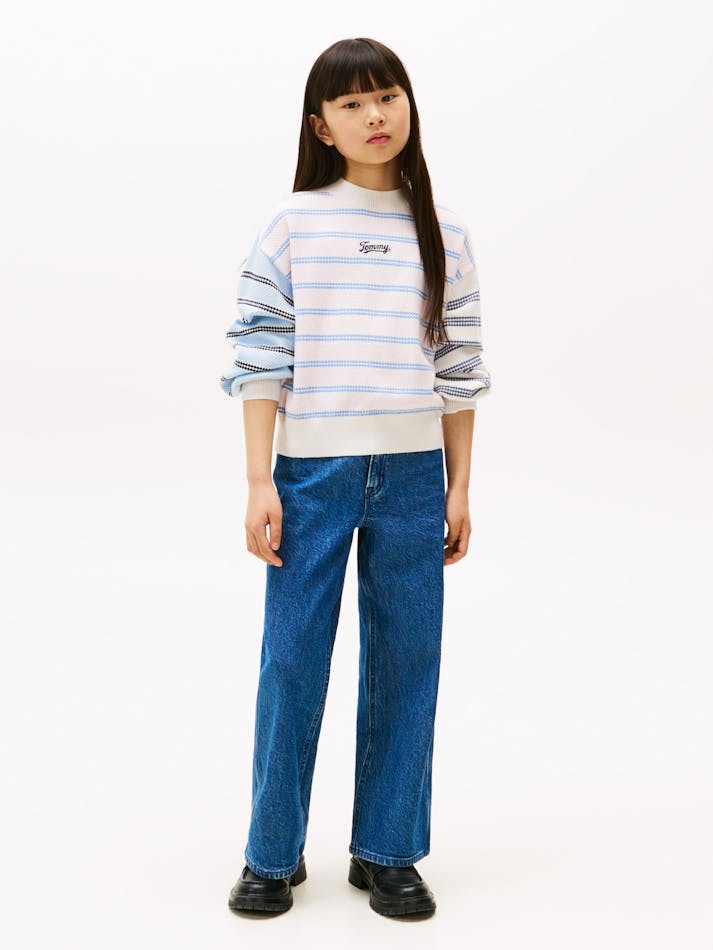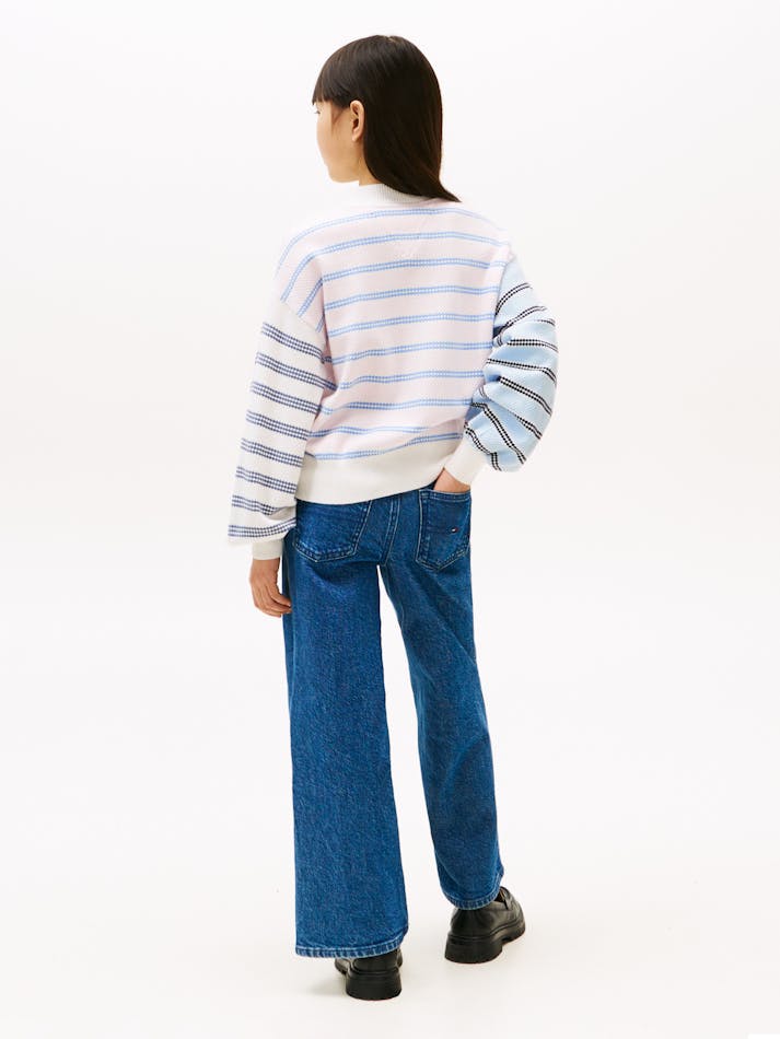 GIRLS 3-7 MIXED STRIPE RELAXED BALLOON SLEEVE JUMPER