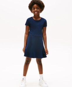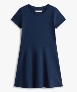 This short-sleeved skater dress, cut to a sleek slim fit with a flared skirt can be dressed up or down.