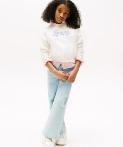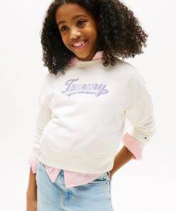 Add some shimmer to their day with this cotton blend sweatshirt, featuring a sequinned Tommy Hilfiger logo, classic crew neckline and ribbed trims for a comfy fit.