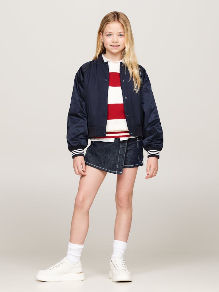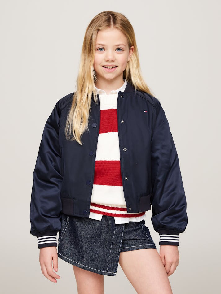 GIRLS 3-7 VARSITY BACK LOGO RELAXED BOMBER JACKET