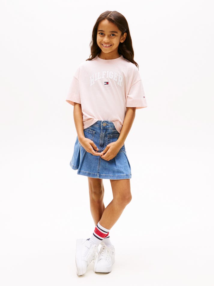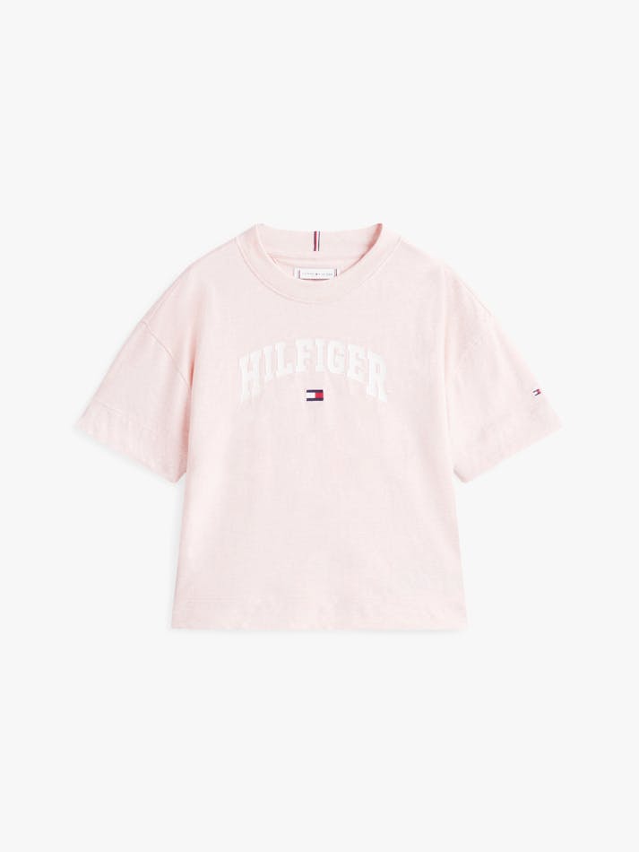 Add a touch of college style to relaxed looks with this pure cotton T-shirt, featuring a varsity-inspired logo on the front.