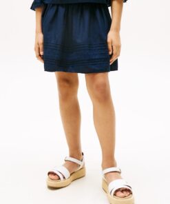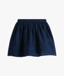 For an extra pretty feel, this breezy skirt features broderie anglaise tape and pintuck detailing around the hem.