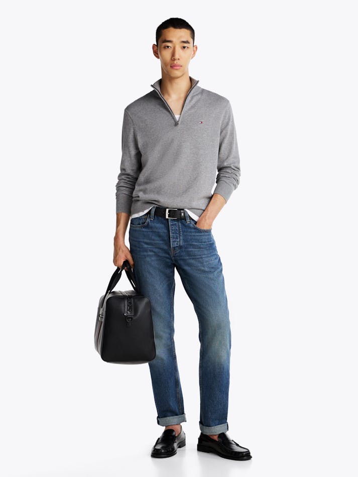 Breathable pure cotton makes this half-zip jumper an ideal layering piece during the transeasonal months, while flag embroidery adds a signature finish.