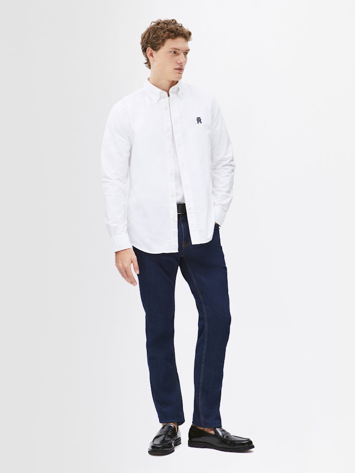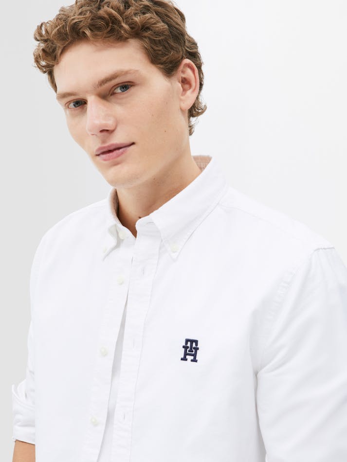 Stay sharp and polished with this pure cotton oxford shirt, offering a semi-spread collar, button-down front, and luxe monogram embroidery for a refined finish.