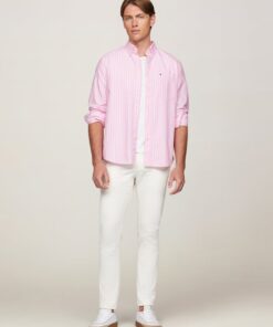 This versatile oxford shirt is perfect to take you from day to evening with its subtle vertical stripe and sharp button down front.