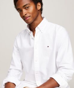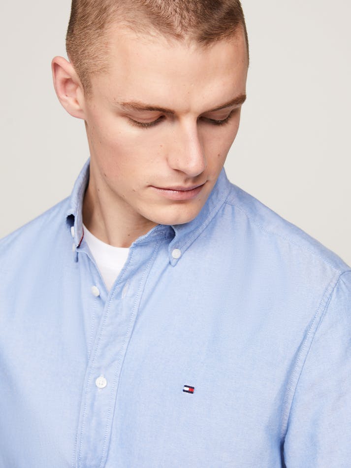 Look effortlessly polished in this button-down collar shirt, made from Oxford cotton for an elegant drape and finished with flag embroidery.