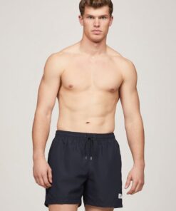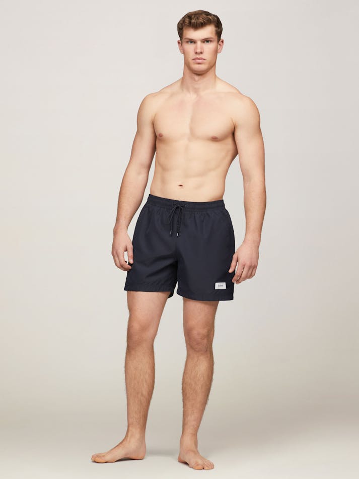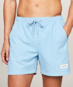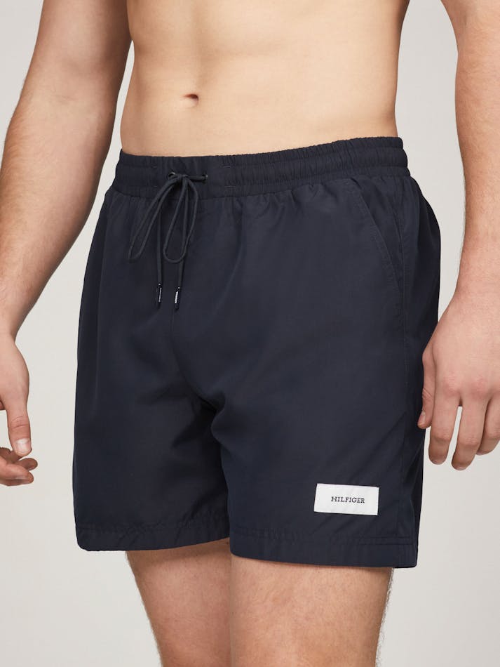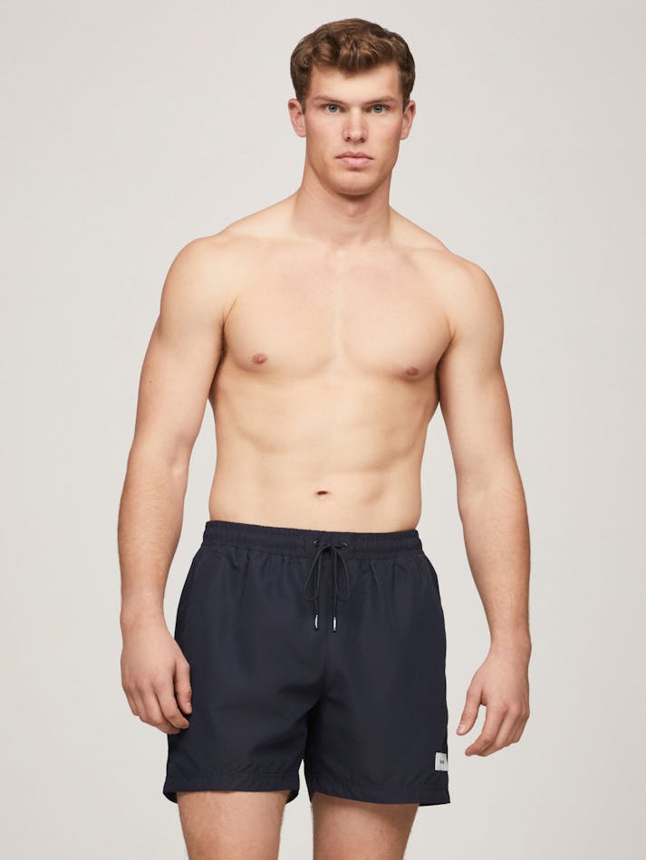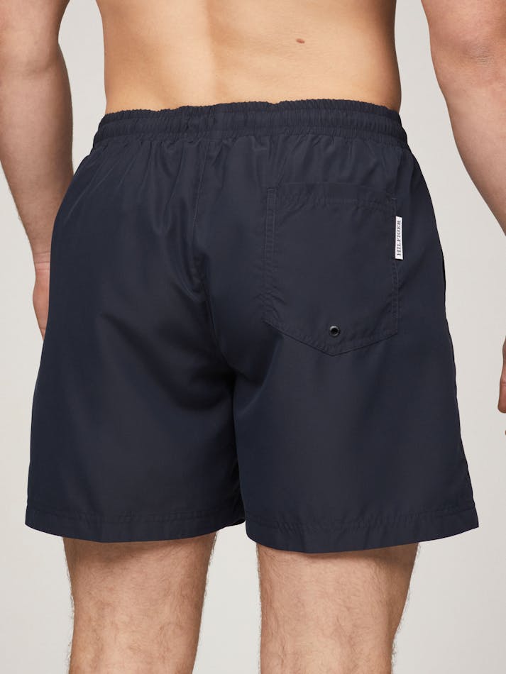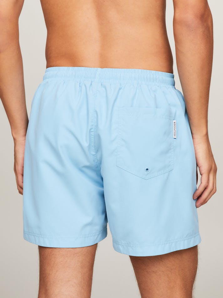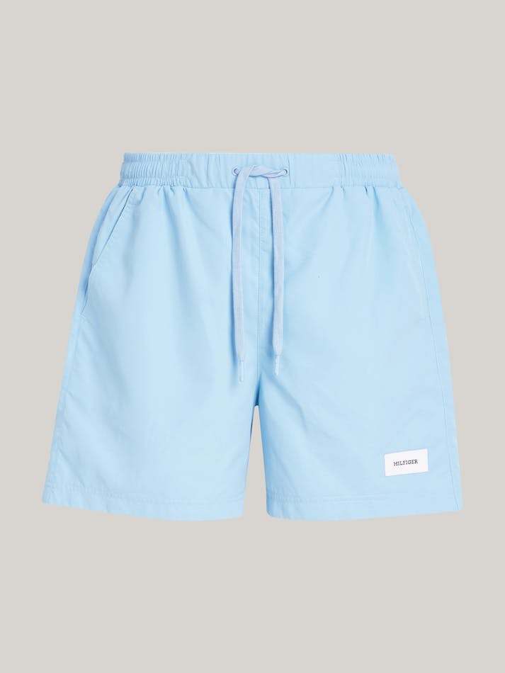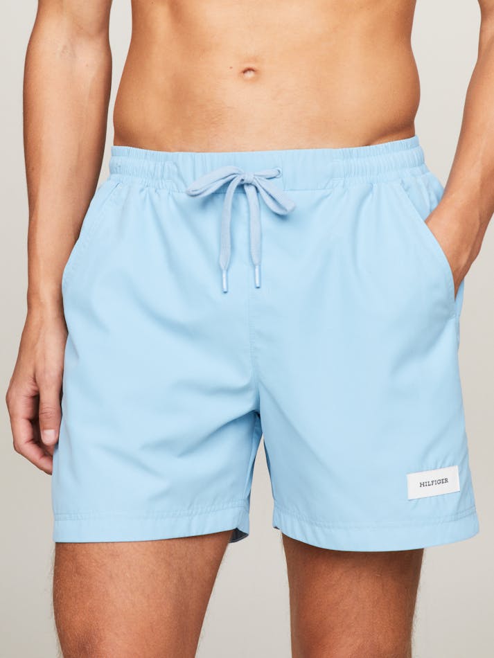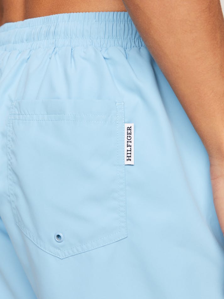 These mid-length drawstring swim shorts are a refined choice with their sophisticated pastel shade and elegant Hilfiger monotype logo.