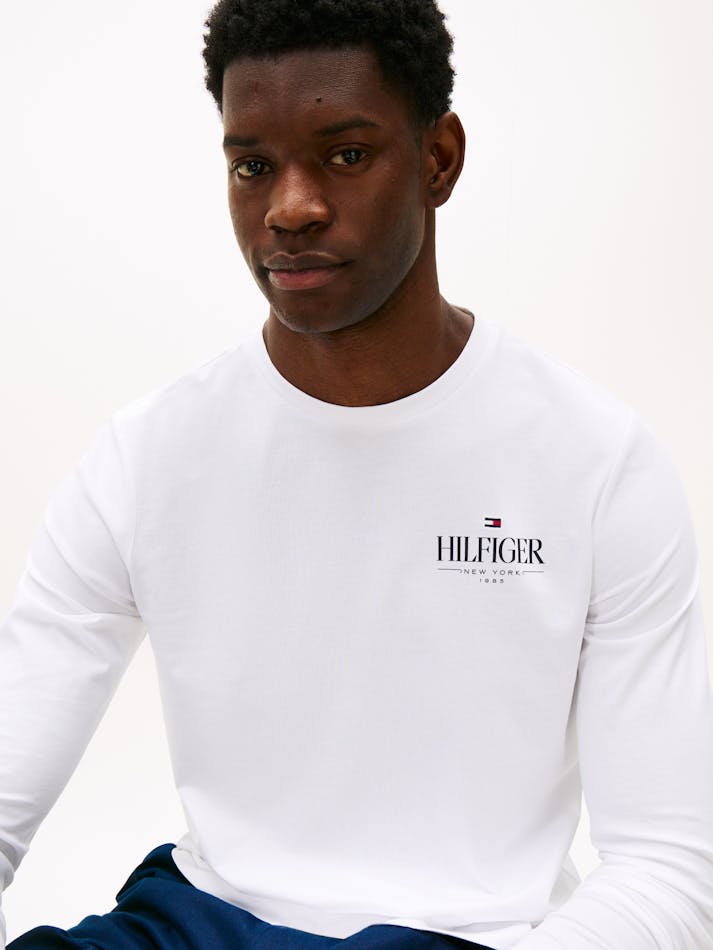 With its comfortable fit and soft regenerative cotton, this long sleeve tee is a versatile choice for everyday adventures and downtime alike. Complete with a Tommy Hilfiger logo on the chest.