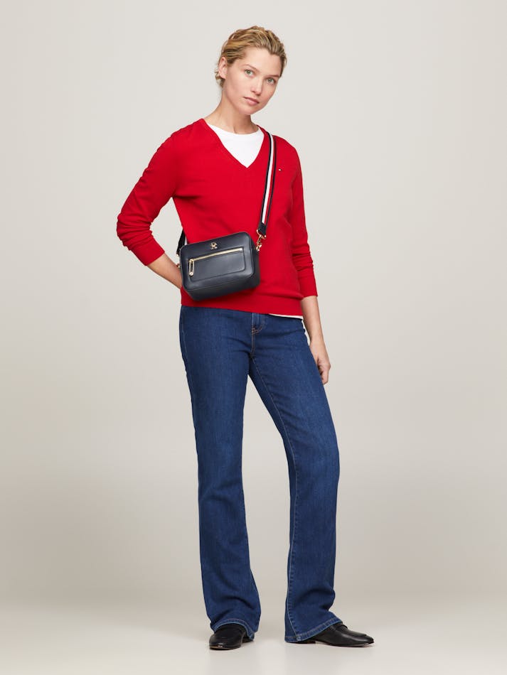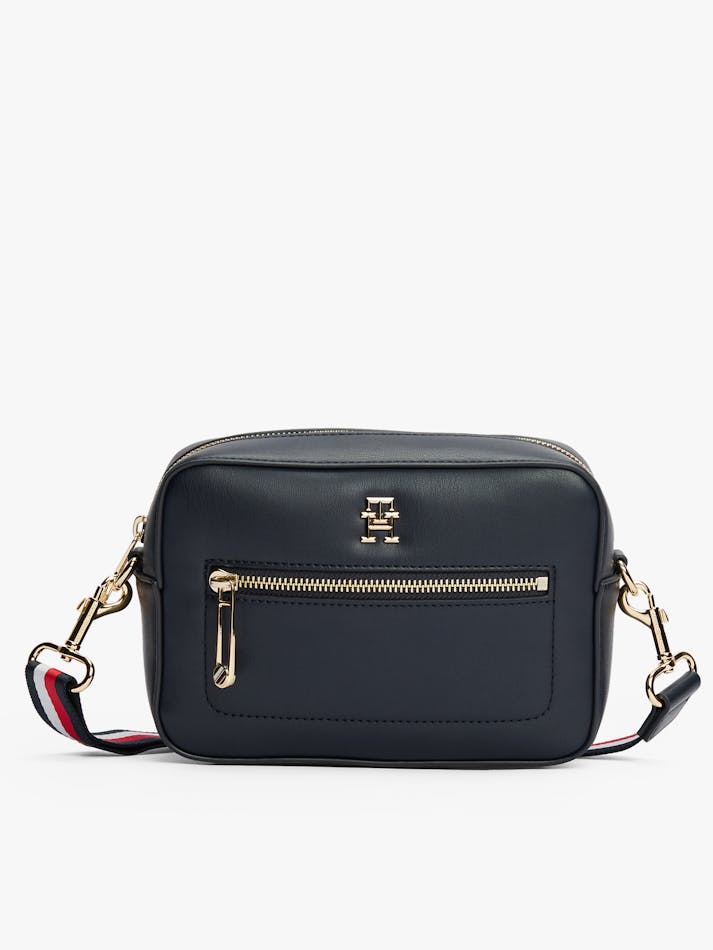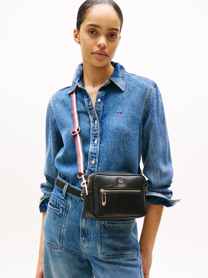 A sleek choice for days out, this camera bag is complete with the signature stripe strap and monogram plaque on the front.