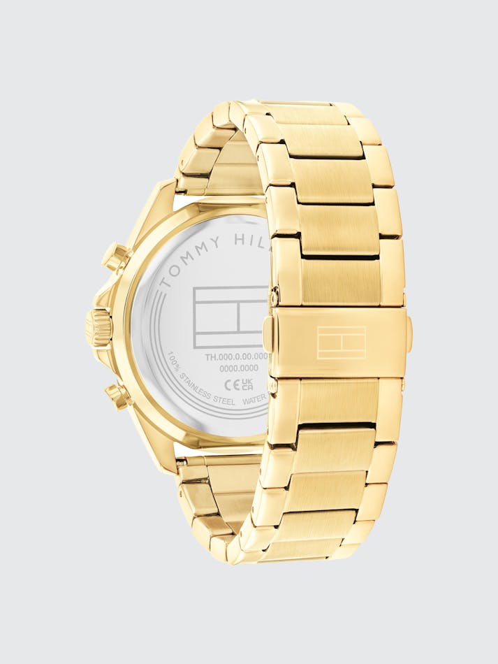 Introducing the Tommy Hilfiger men’s watch a bold statement of sporty sophistication. At its core lies a dimensional double-layer dial, a striking visual masterpiece that captures the essence of boldness and innovation. Oversized hands dominate the face, adding a touch of rugged charm to its athletic-inspired design. Sub-eyes positioned at 12, 6, and 9 o’clock offer multifunctional versatility, while stamped gear detail at the 4 o’clock position. It is a multifunction dial, featuring weekday, 24-hour, and date sub-eyes. Crafted for the modern man who embraces adventure and dares to stand out, this timepiece exudes confidence and unparalleled style.