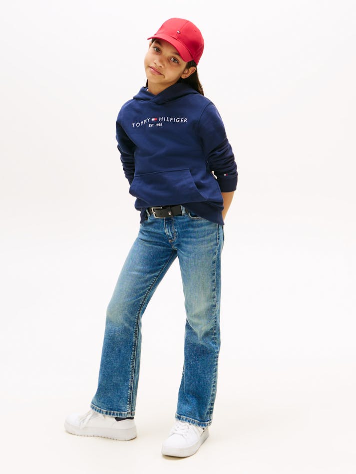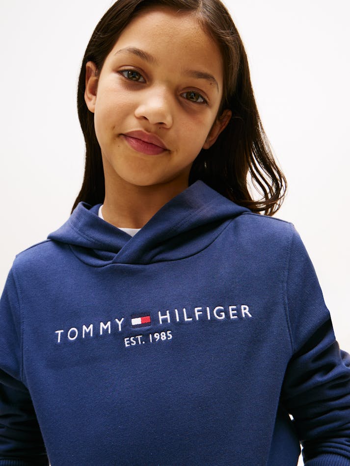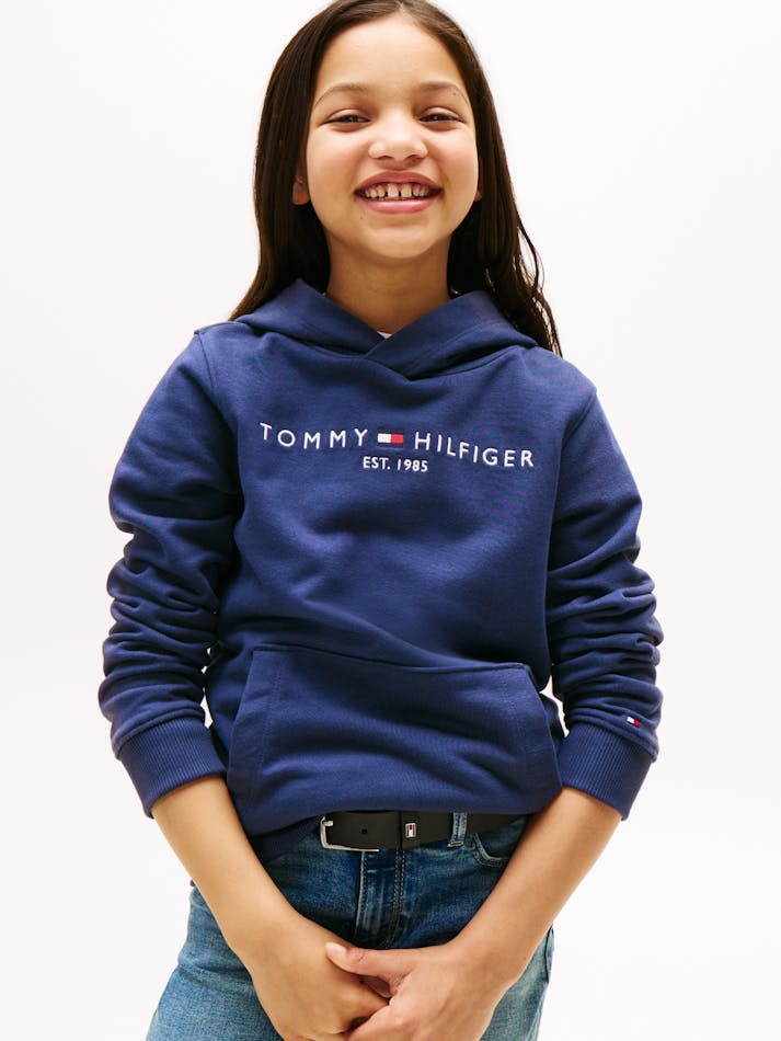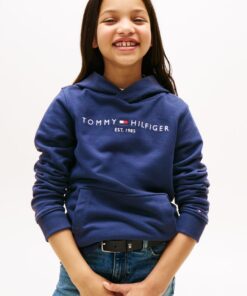Crafted from a soft fleecy Cotton, this essential hoodie fuses comfortability, a timeless silhouette and style. Branded with the iconic Tommy Hilfiger logo, this hoodie will elevate your winter wardrobe and team like a dream with the essential collection.