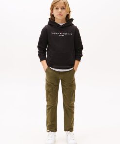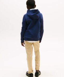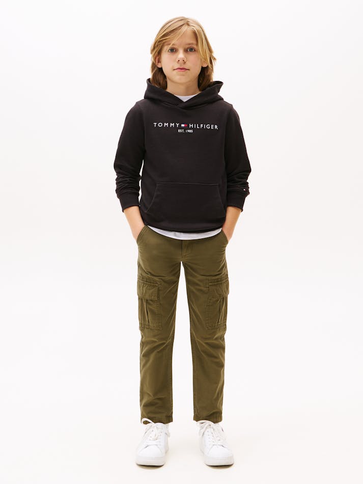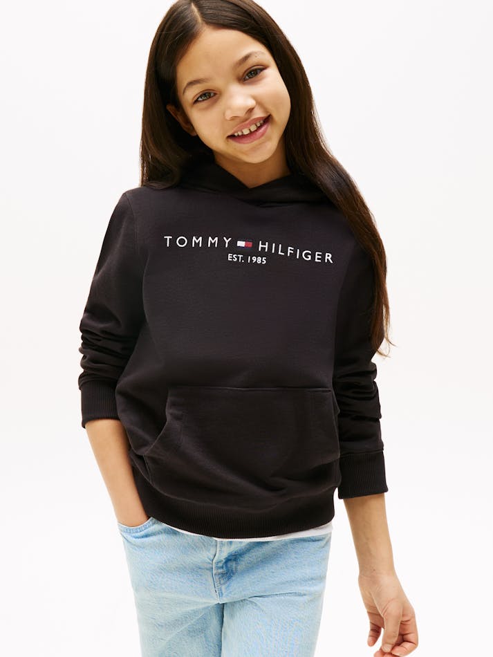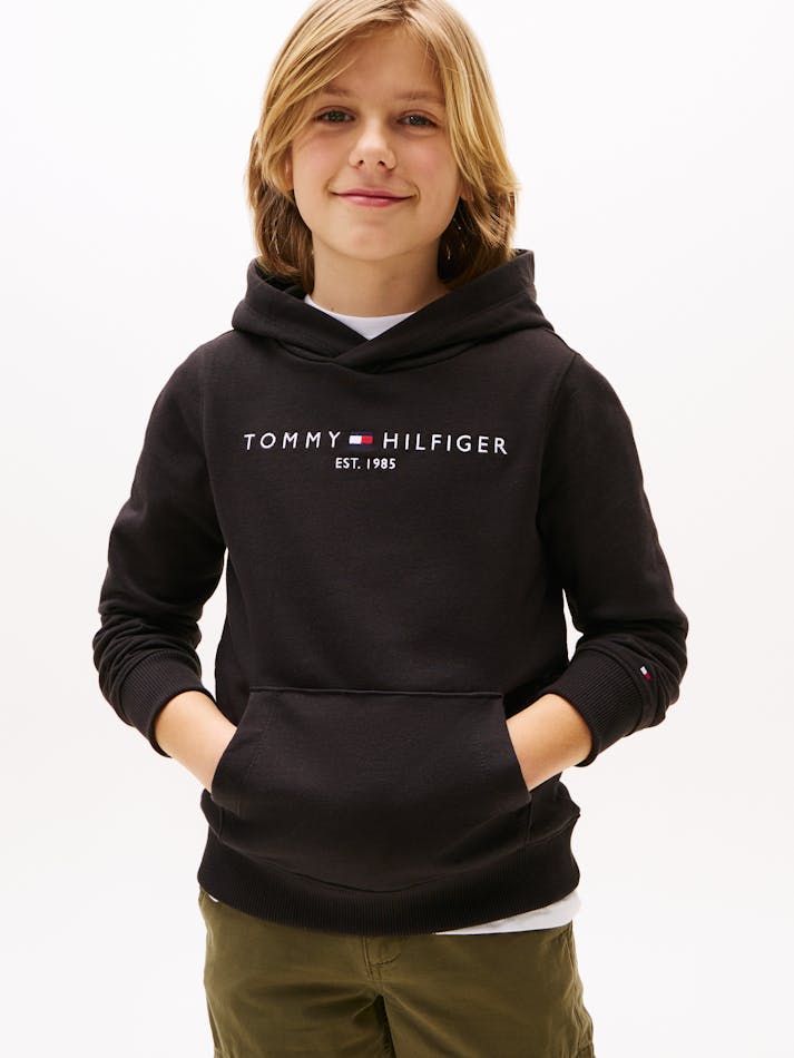 Crafted from a soft fleecy Cotton, this essential hoodie fuses comfortability, a timeless silhouette and style. Branded with the iconic Tommy Hilfiger logo, this hoodie will elevate your winter wardrobe and team like a dream with the essential collection.