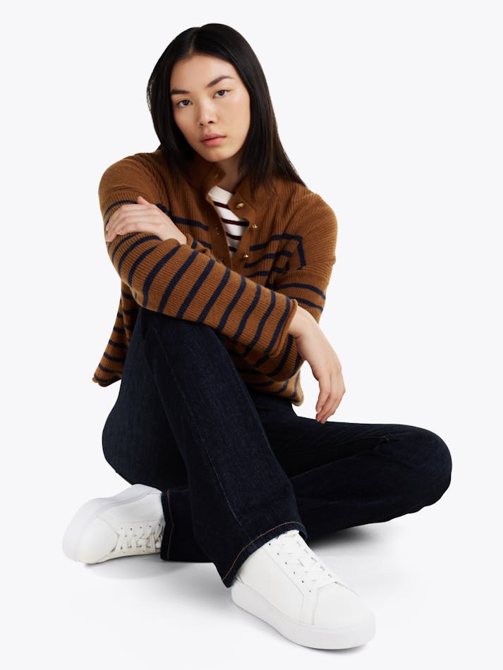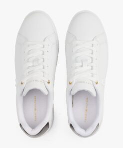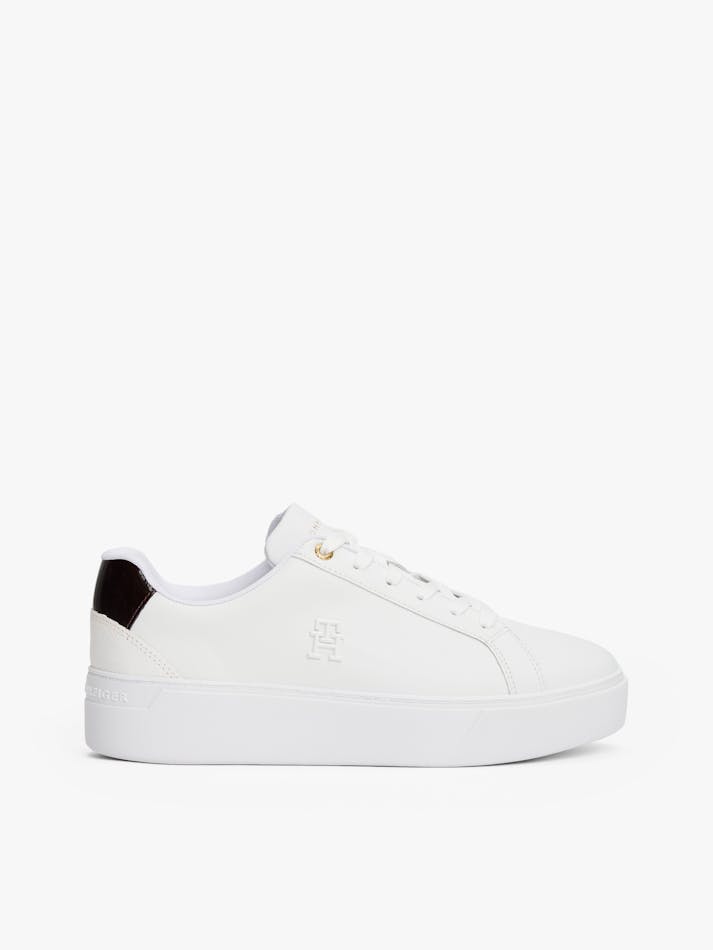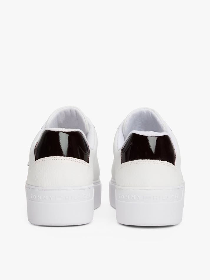 These court trainers with elevated soles feature grained and patent leather panels on the heel for a subtle mix of textures.