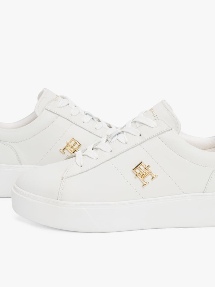 Metallic highlights add pops of eye-catching shine to these leather court trainers, while the platform sole really elevates the look.