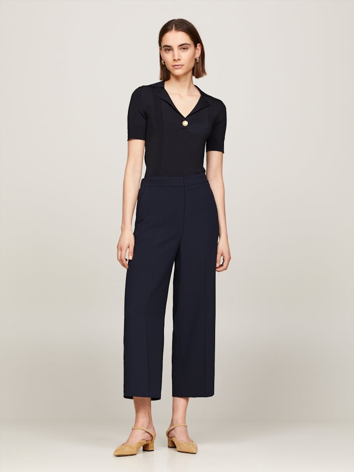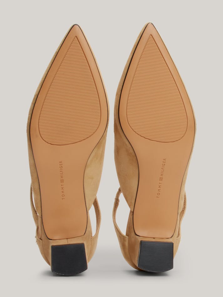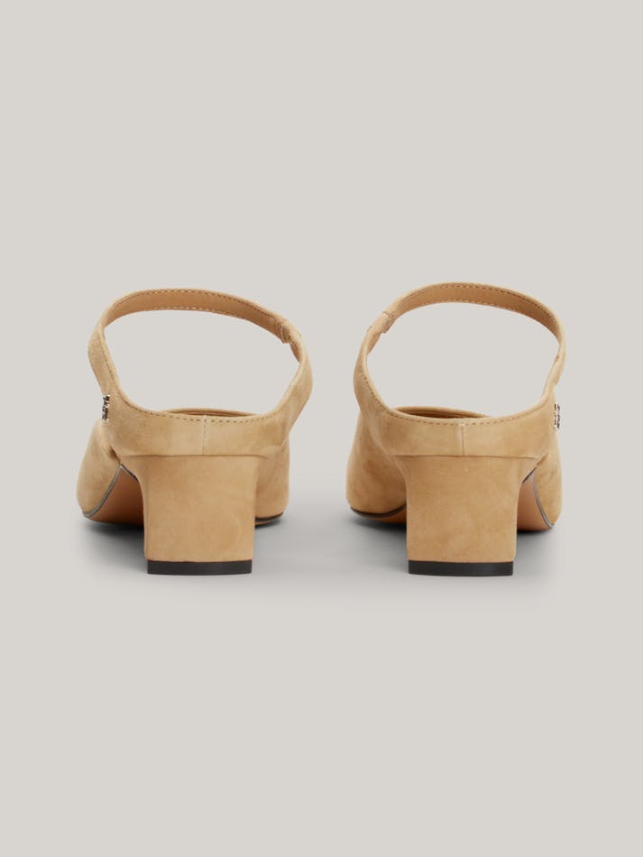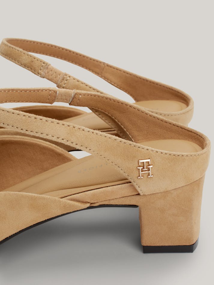 Complement occasion wear with these chic block-heel mules, crafted from smooth leather with an elegant pointed toe and polished TH monogram decoration.