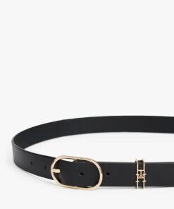 LEATHER TH MONOGRAM OVAL BUCKLE BELT