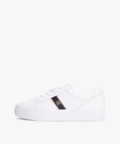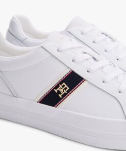 These low-top trainers feature smooth leather uppers accented with a glossy TH monogram plaque sitting on signature webbing strips.